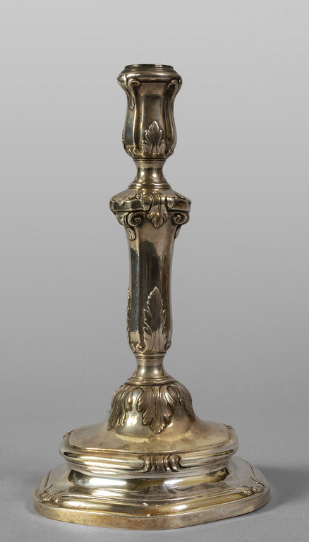 Candeliere in argento Luigi XV, punzone della Torretta, Genova sec.XVIII