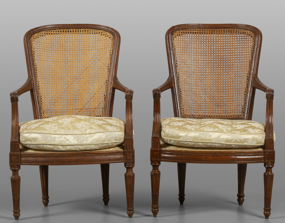 Coppia di poltrone Luigi XVI in noce con cannè, Genova sec.XVIII