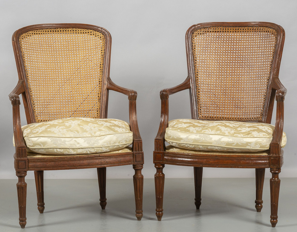 Coppia di poltrone Luigi XVI in noce con cannè,
