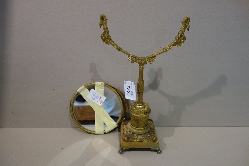 Specchio da toilette in bronzo dorato in stile