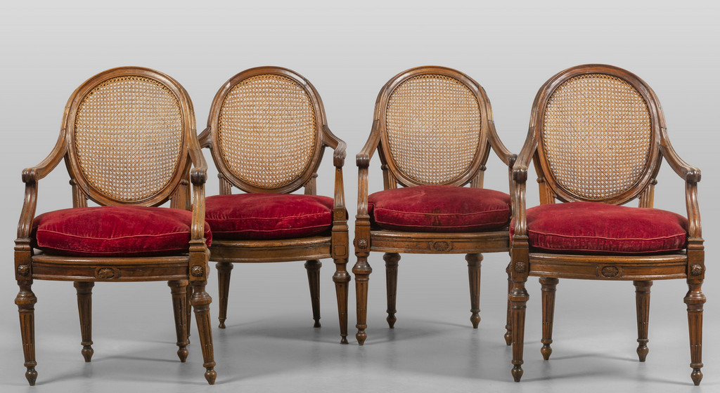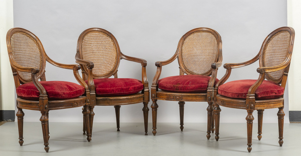 Lotto 0796 | Quattro poltrone Luigi XVI in noce, Genova II