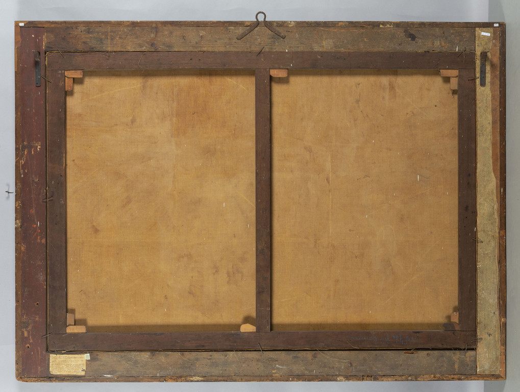 Scuola veneta sec.XVIII "Scena classica" olio, cornice in legno intagliato e dorato
