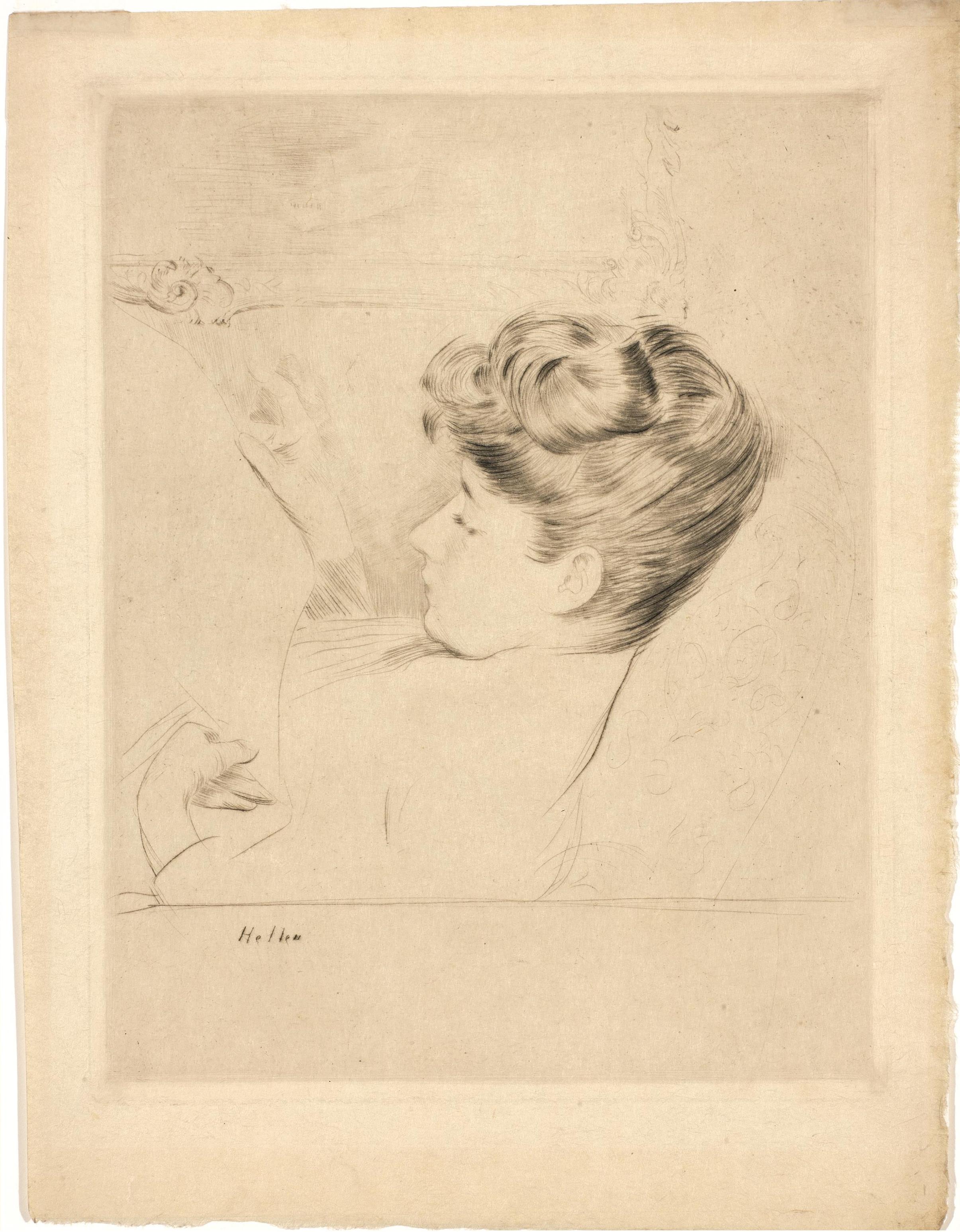 Helleu, Paul César(Vannes 1859 - Parigi 1927)JEUNE FEMME LISANT AU CANAPÉ....