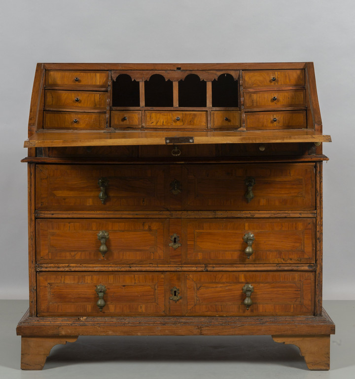 Bureau Luigi XIV lastronato in ulivo con rosa dei