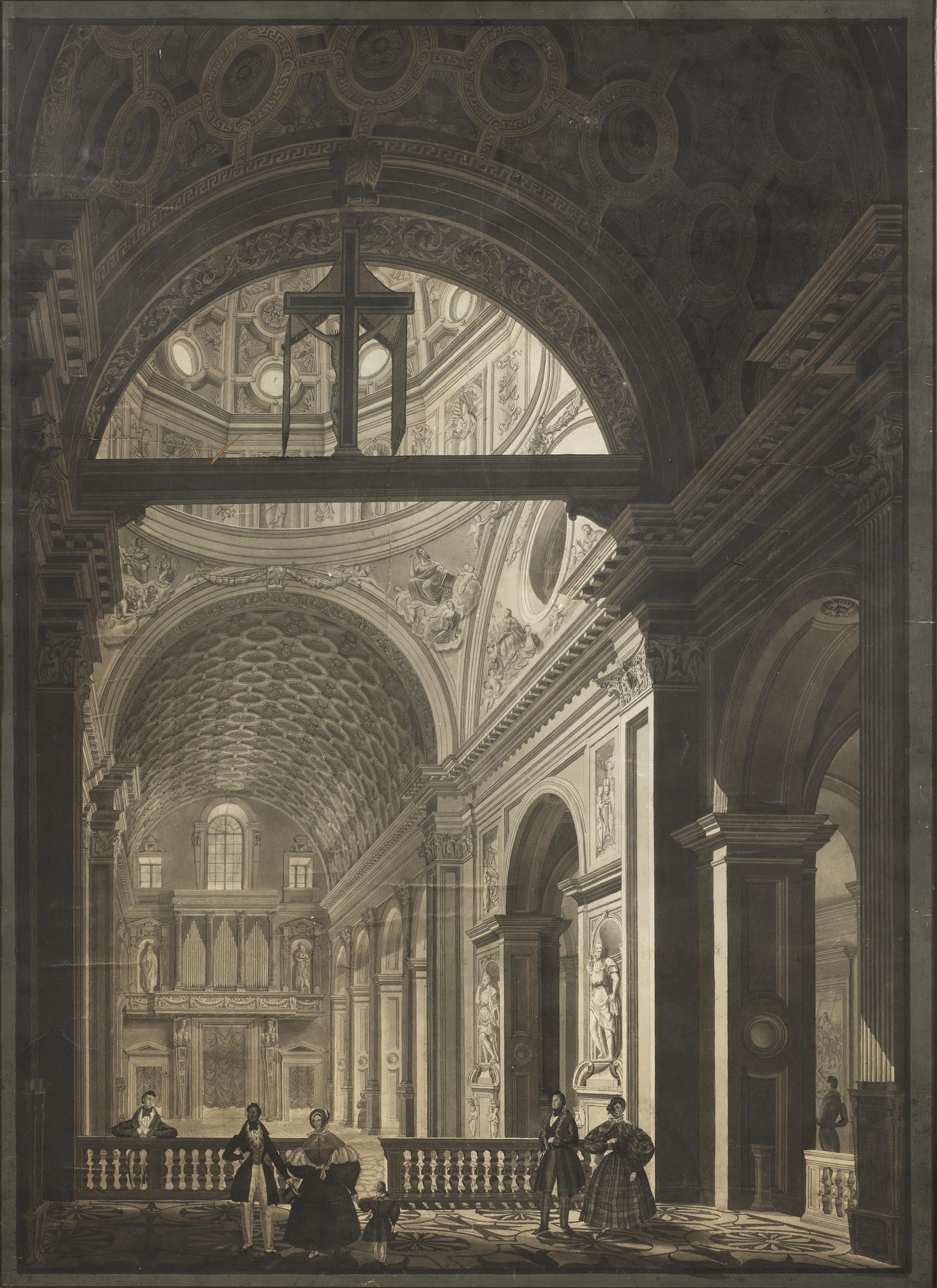[attribuito a] Bisi, Luigi(Milano 1814 - 1886)INTERNO DI CHIESAPenna nera e...