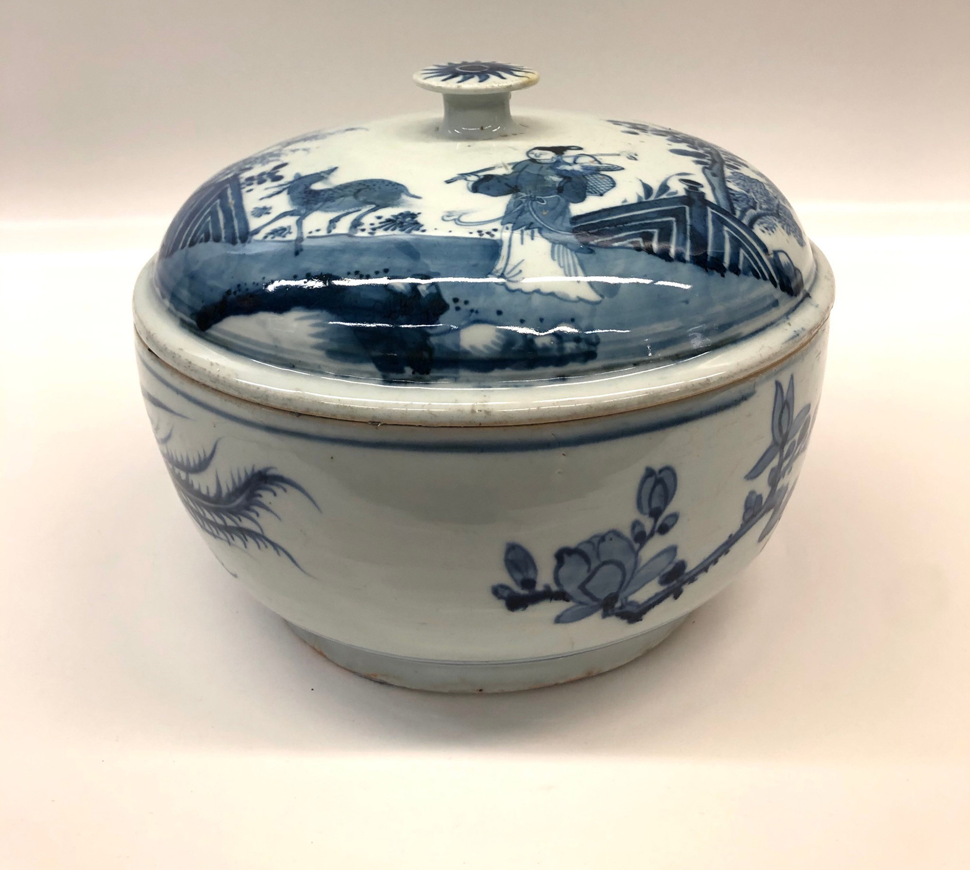 Cina zuppiera in porcellana bianca e blu