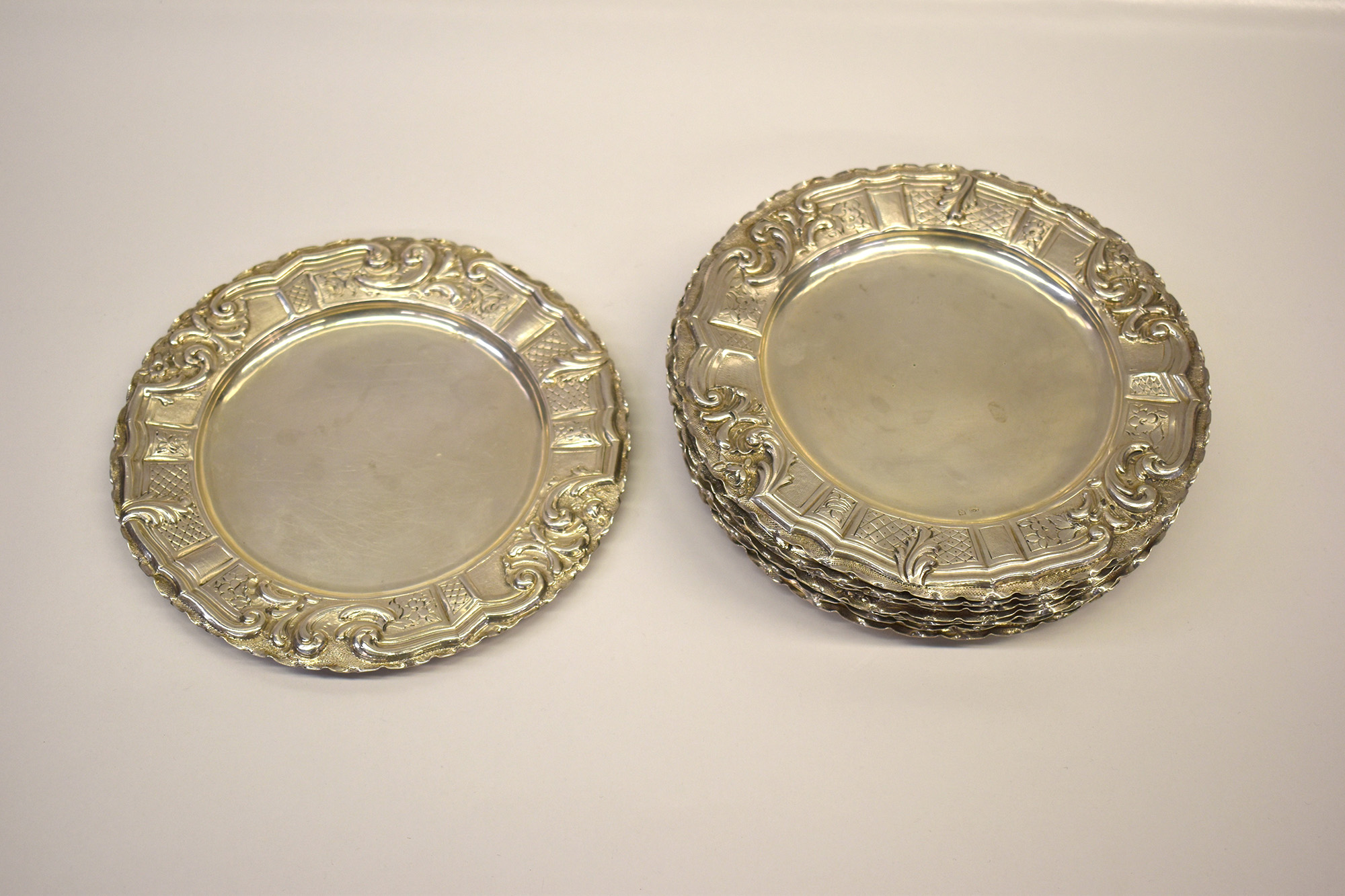 Precedente Lotto 0070 Successivo Casa d'Aste Martini - C.so Cavallotti 76, 18038 Sanremo ASTA ANTIQUARIATO, DIPINTI, ARTE ORIENTALE E DESIGN Sessione unica sabato 24 settembre 2022 ore 15:00 (UTC +01:00) n.11 piatti in argento gr.2693 n.11 piatti in argento gr.2693