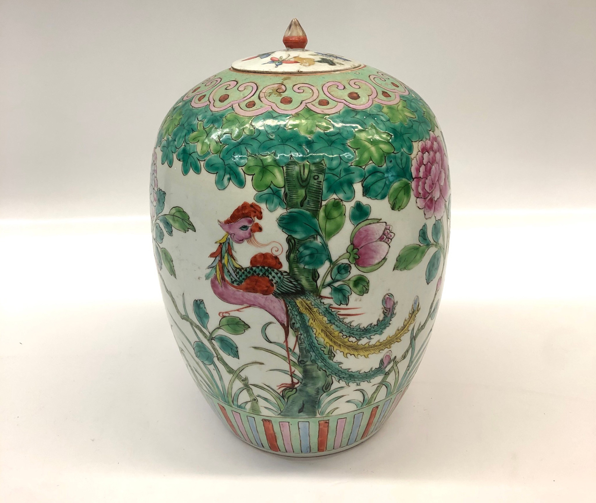 Cina vaso con coperchio decorato con motivi vegetali e fenice