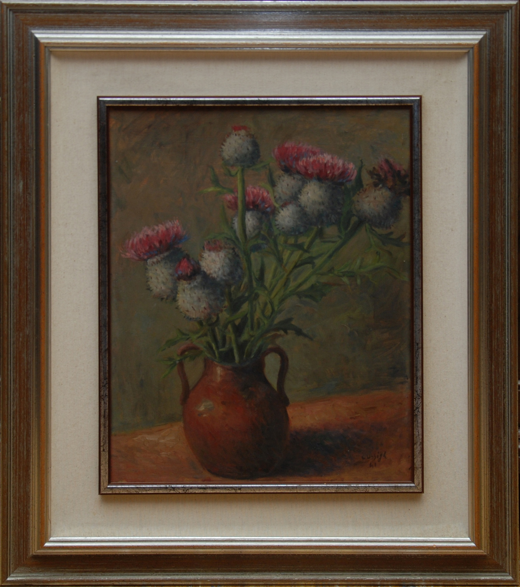 Arturo Cussigh olio su compensato raff.vaso di fiori firmato in basso a destra