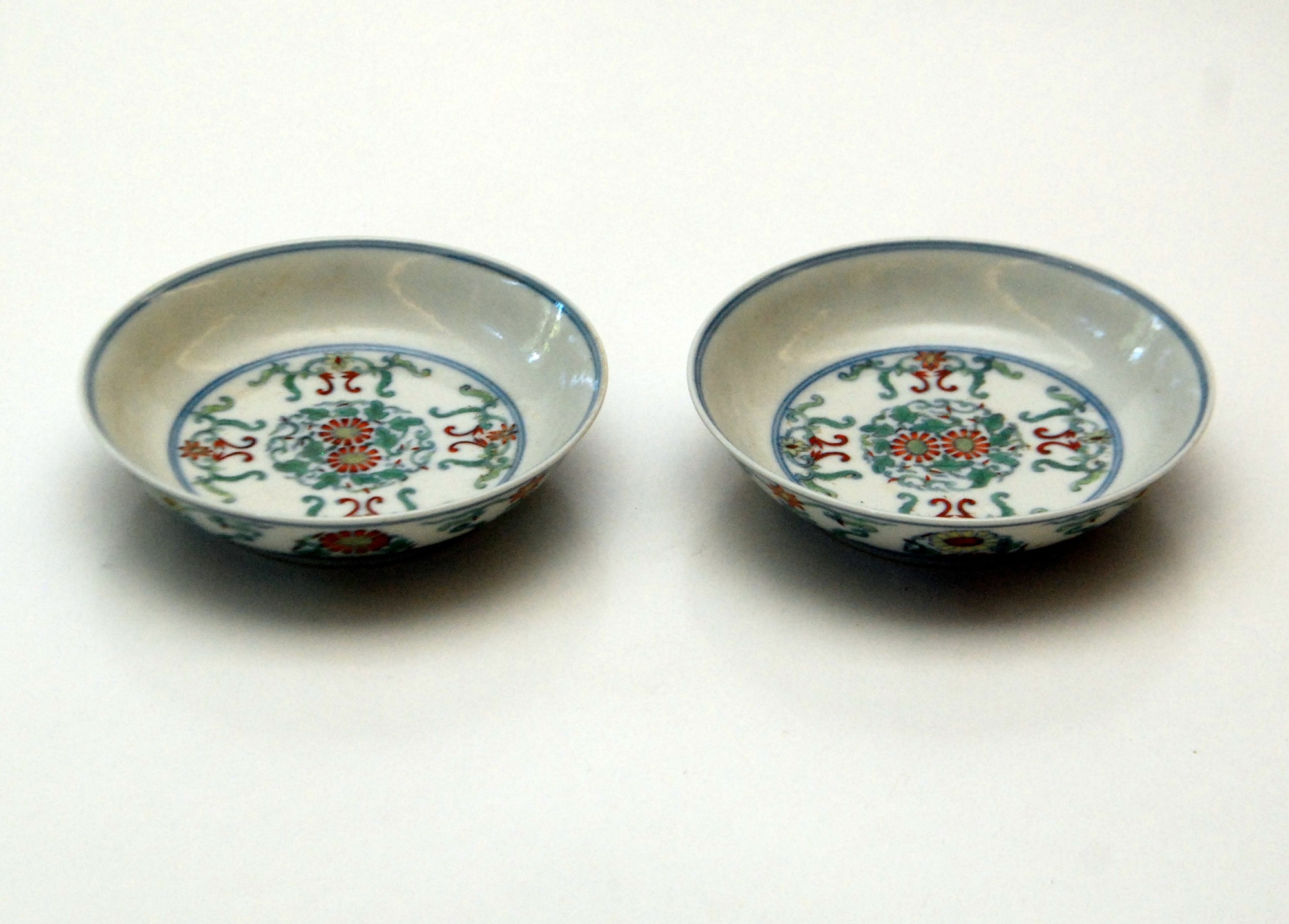 Cina coppia di piatti in porcellana dipinti<br>dm