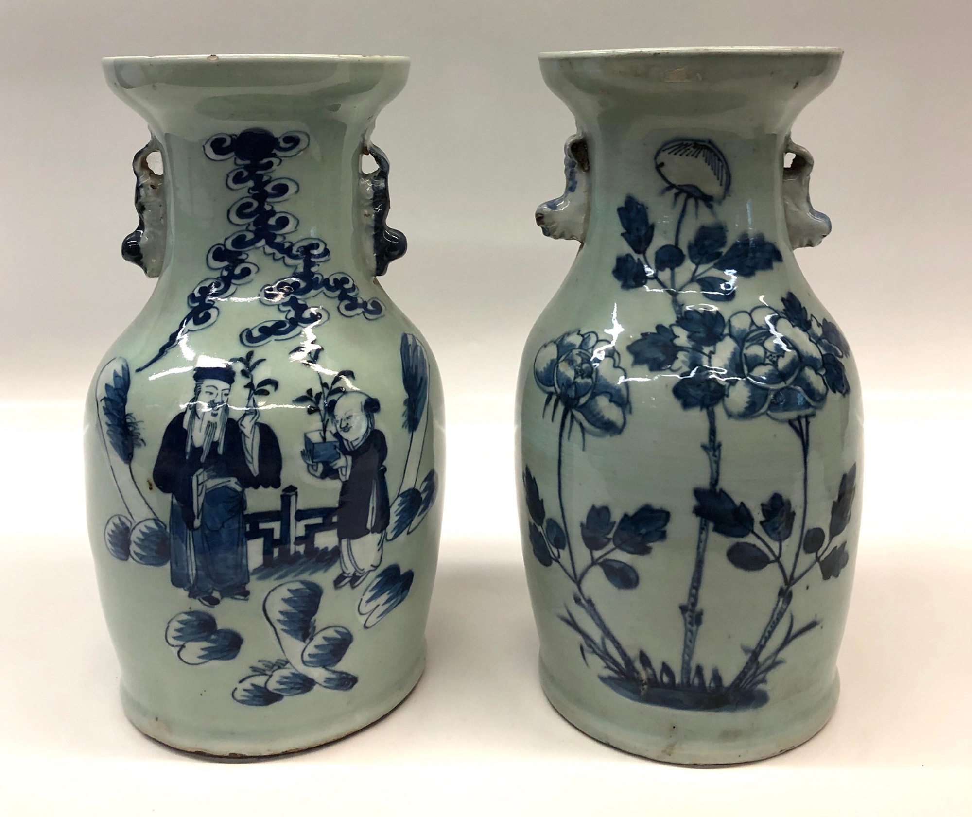 Cina n 2 vasi in porcellana bianca e blu<br>cm.x