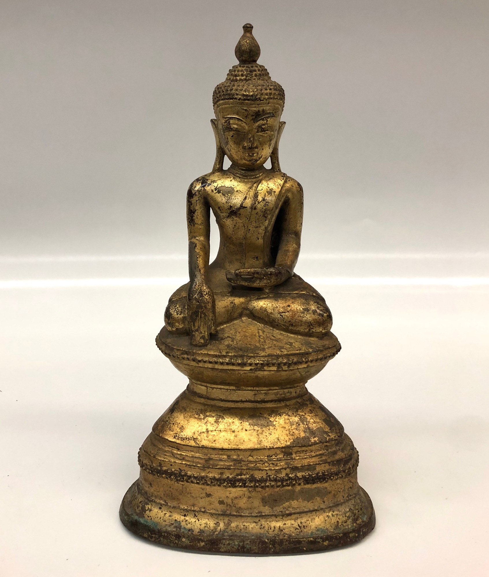Thailandia buddha in bronzo dorato<br>cm.x h. 24