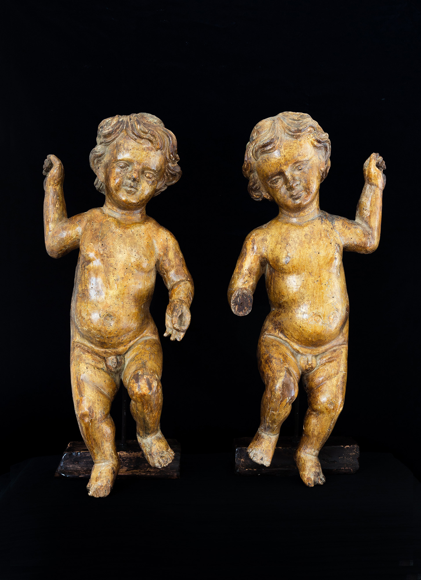 Lotto 0193 | coppia di putti in legno dorato sec.XVII<br>cm.x