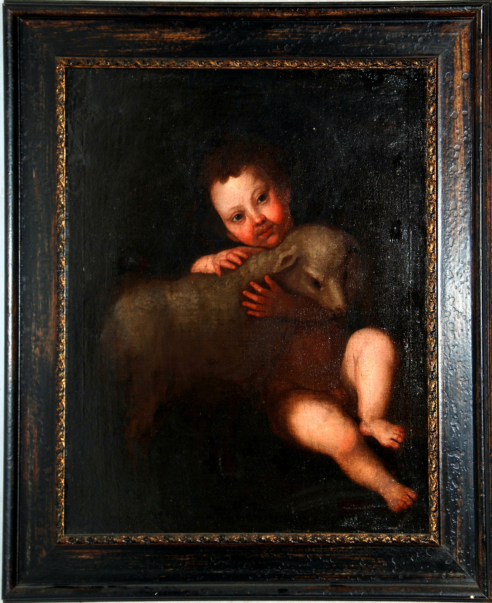 olio su tela raff.San Giovannino con pecora sec.XVII