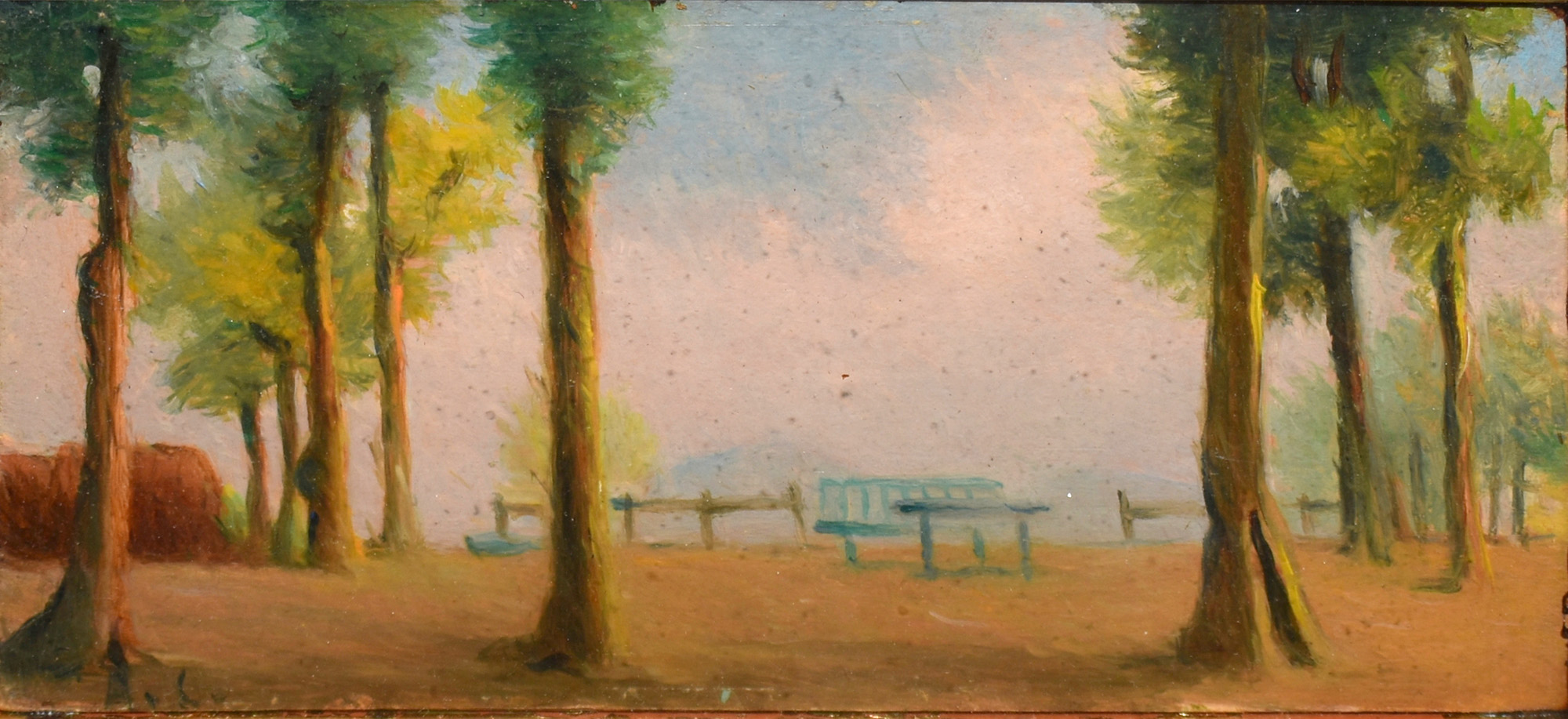Antonio Calderara 1903/1978 olio su tavoletta raff.parco, monogrammato in basso a sinistra A.C.