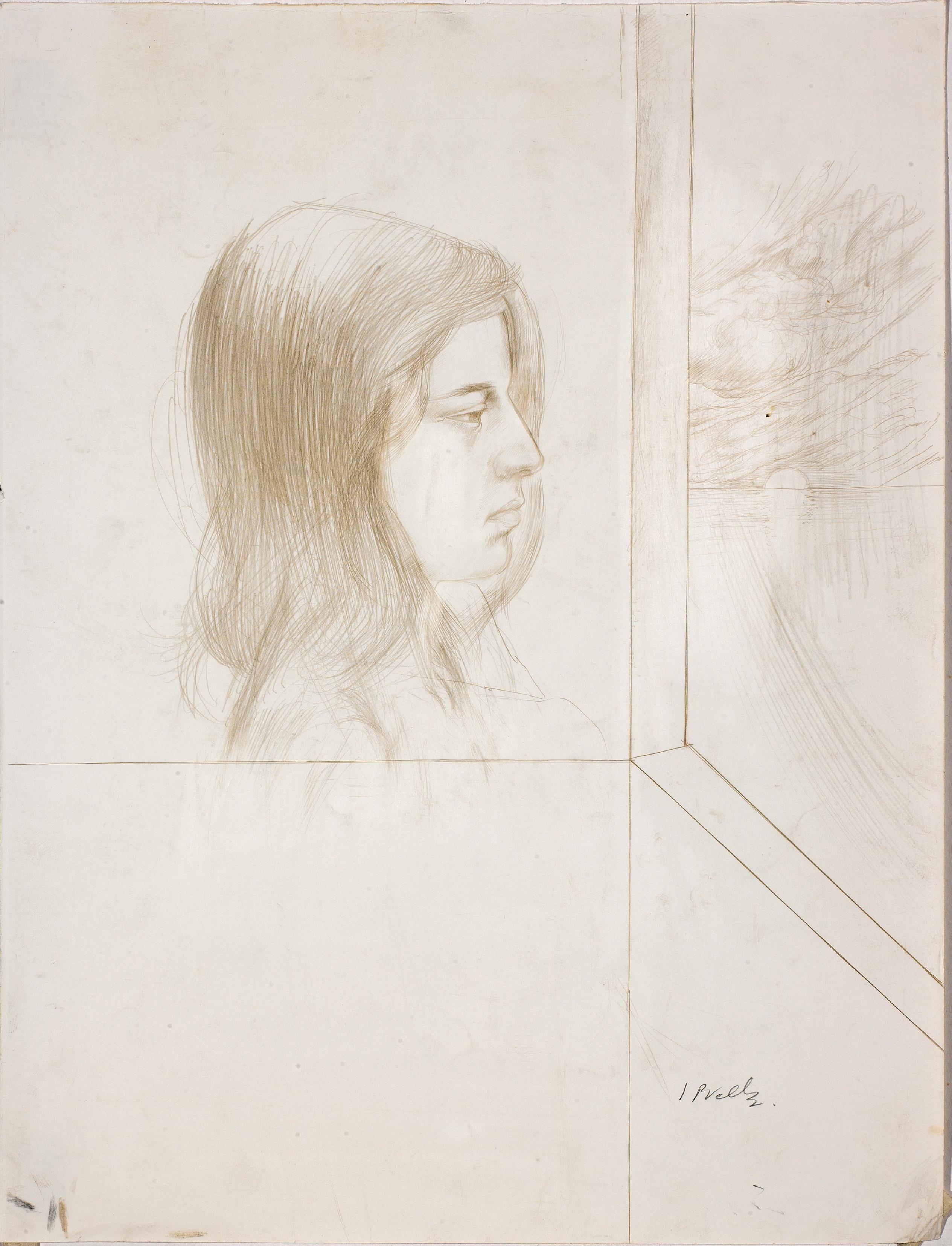STUDIO DI PROFILO FEMMINILE ALLA FINESTRA.