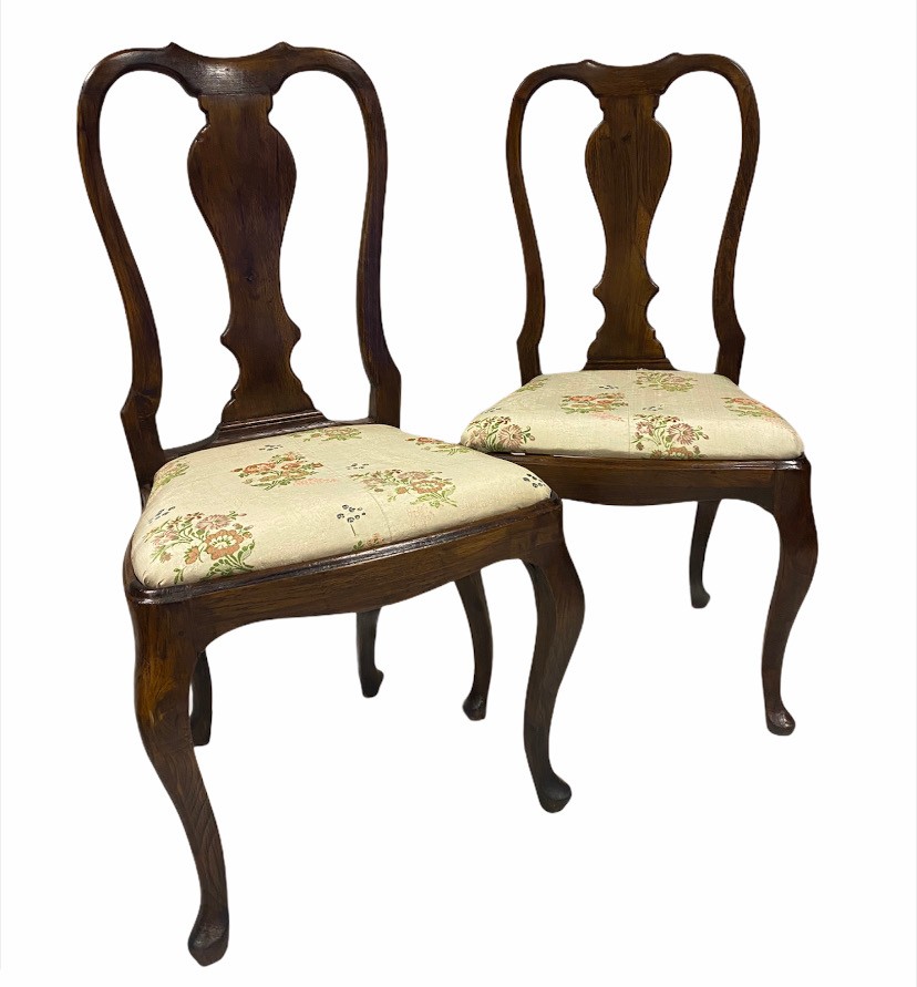 coppia di sedie in legno di noce con seta antica stile Luigi XV