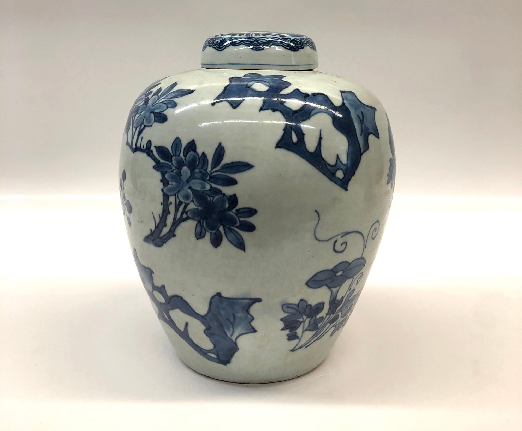 Cina vaso in porcellana bianca e blu con coperchio