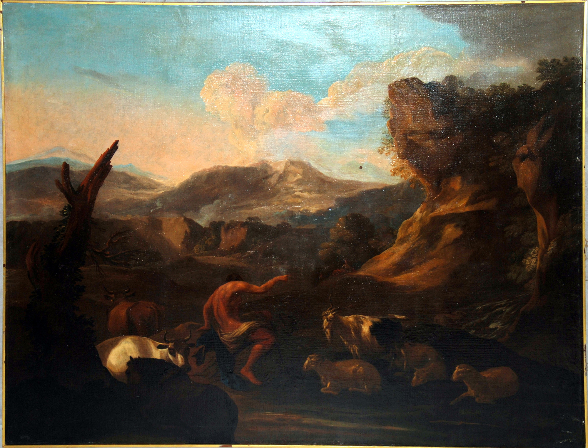 olio su tela raff.paesaggio con pastore e armenti sec.XVII