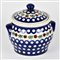 VASETTO CON COPERCHIO in ceramica decorato a motivi geometrici blu, verdi e...