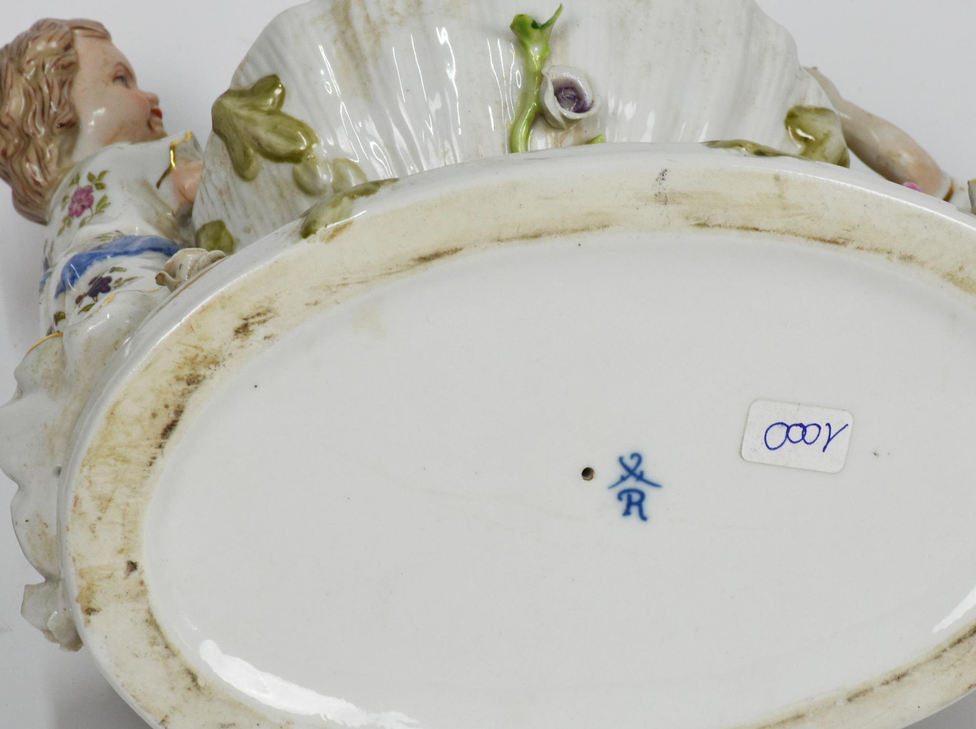 CENTROTAVOLA IN CERAMICA raffigurante bimbe che sostengono festoni di fiori h...