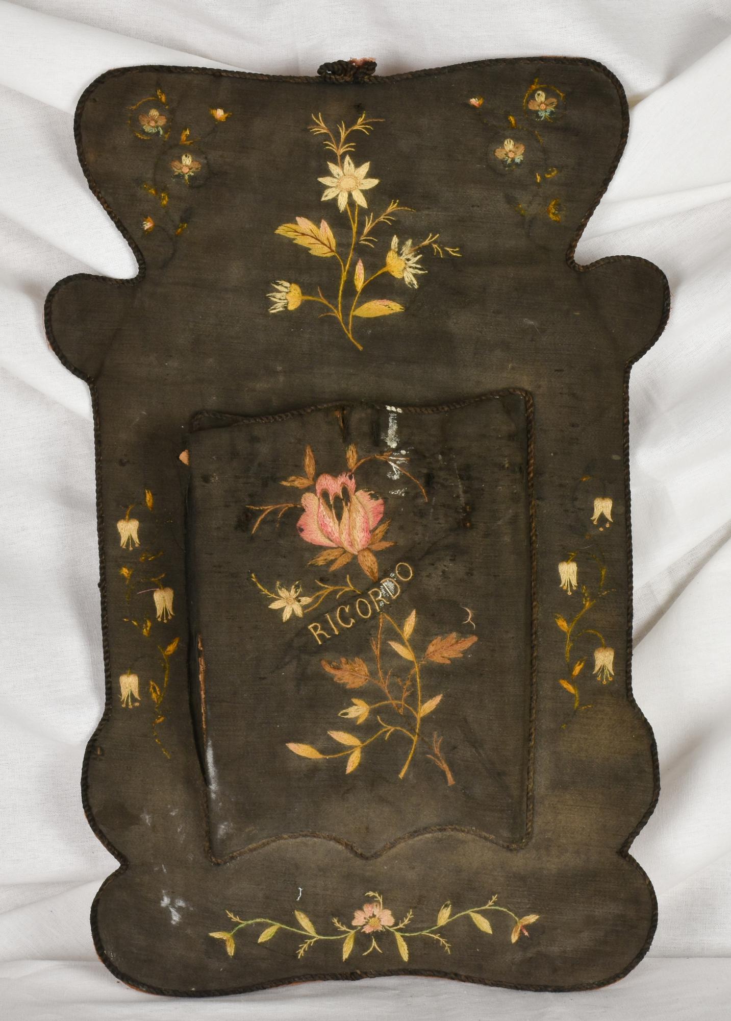 PORTADOCUMENTI DA PARETE in seta ricamata Italia, 1920 37x23 cm Difetti strappi