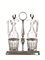 Oliera, Francia, fine sec. XIX, in argento, base rettangolare con quattro piedini a sfera, porta ampolle traforato a fiore stilizzato, fusto a balaustro con presa ad anello, completa di ampolle in vetro lavorato, tappi non pertinenti, g 680, lievi danni ad uno dei tappi