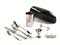 Set da viaggio, Vienna 1832, in argento, composto di bicchiere, cucchiaio, coltello, forchetta, cucchiaino da tè, porta uovo, porta pillole e poggia posate decorati da monogramma coronato inciso, entro custodia, complessivi g 645 lordi (8)