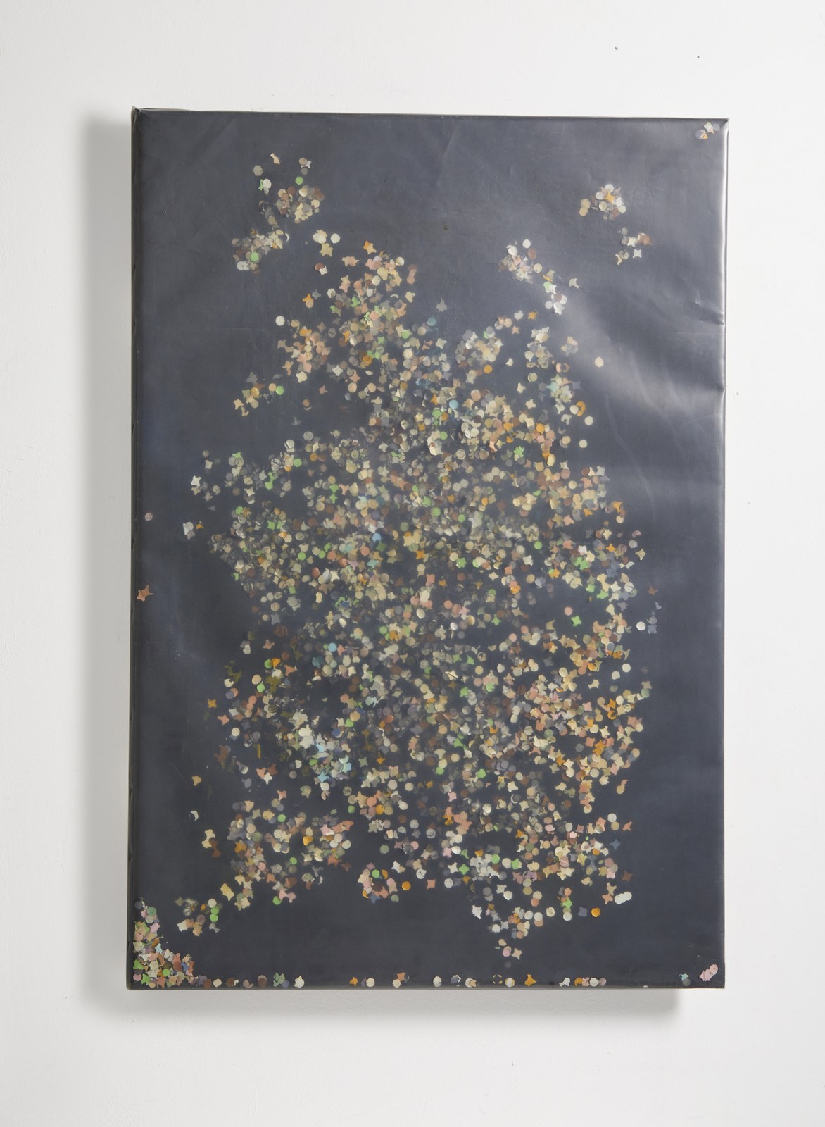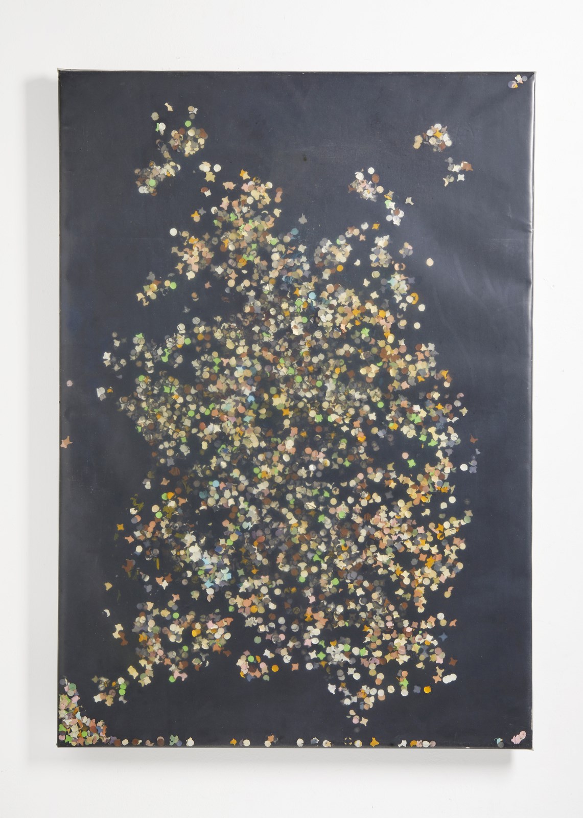 FESTA TANO (1938 - 1988) Coriandolo. . Acrilico, confetti e plastica su tela . Cm 70,00 x 100,00. (1982-1983). Firma al retro. Opera archiviata presso lo Studio Soligo, Roma, come da documentazione fotografica allegata all'opera riportante il relativo numero d'inventario. Lievi difetti.