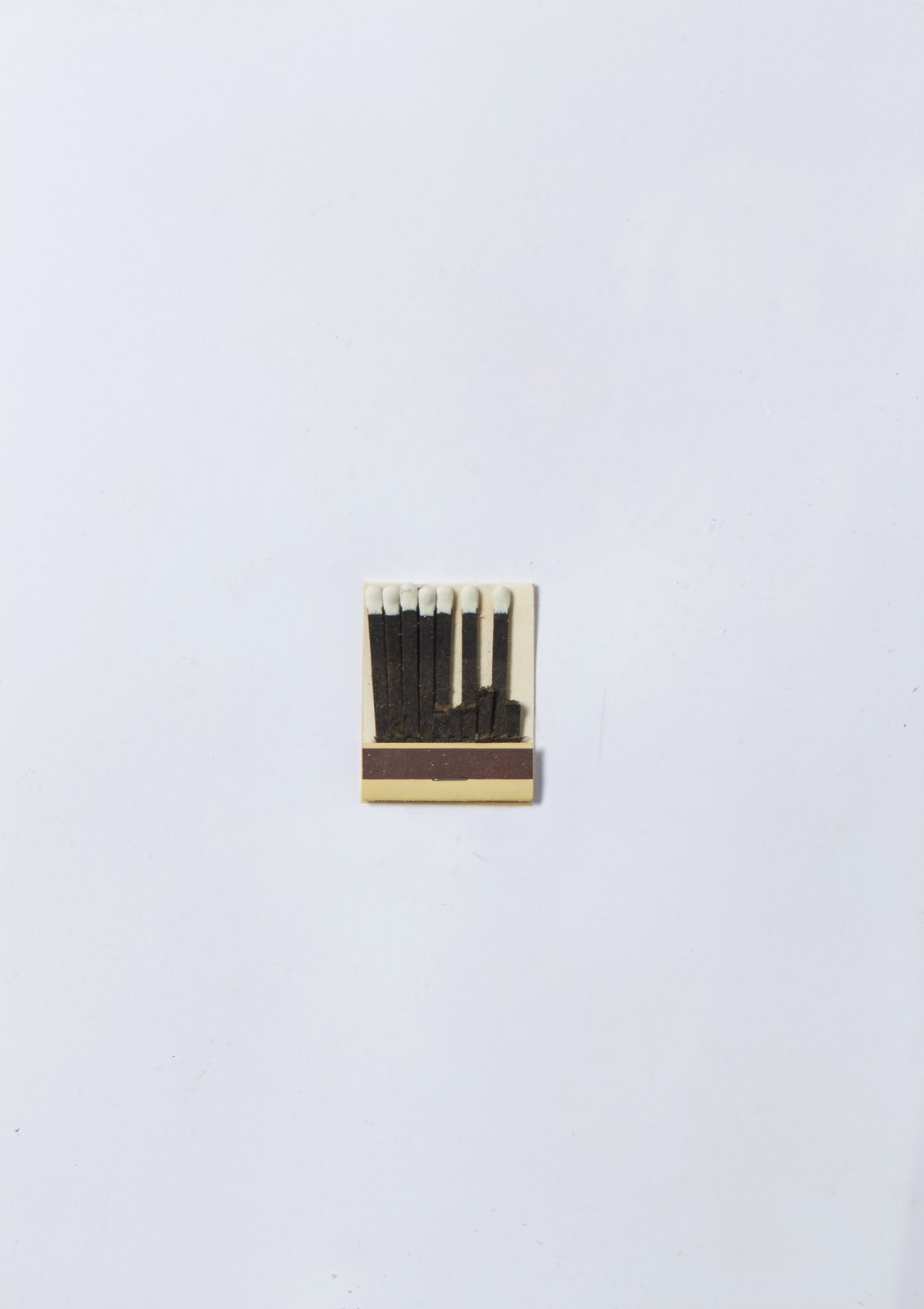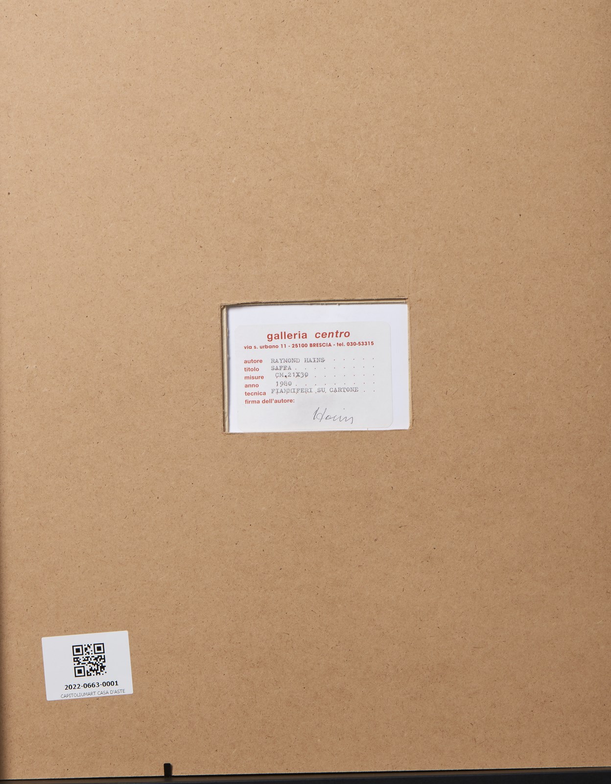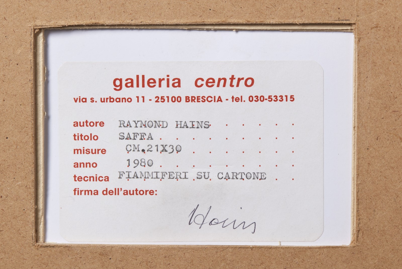 HAINS RAYMOND (1926 - 2005) Saffa. 1980. Fiammiferi su cartone. Cm 21,00 x 30,00. Firma e cartiglio descrittivo Galleria Centro, Brescia al retro. Provenienza Galleria Centro, Brescia; Collezione privata, Verona. Cornice presente
