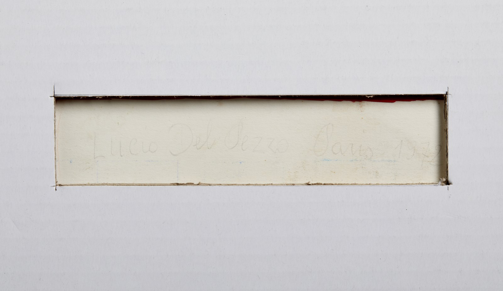 DEL PEZZO LUCIO (n. 1933) Senza titolo. . 1972. Collage su carta. Cm 26,00 x 26,00. Firma e anno al retro. Lievi difetti. . Cornice presente