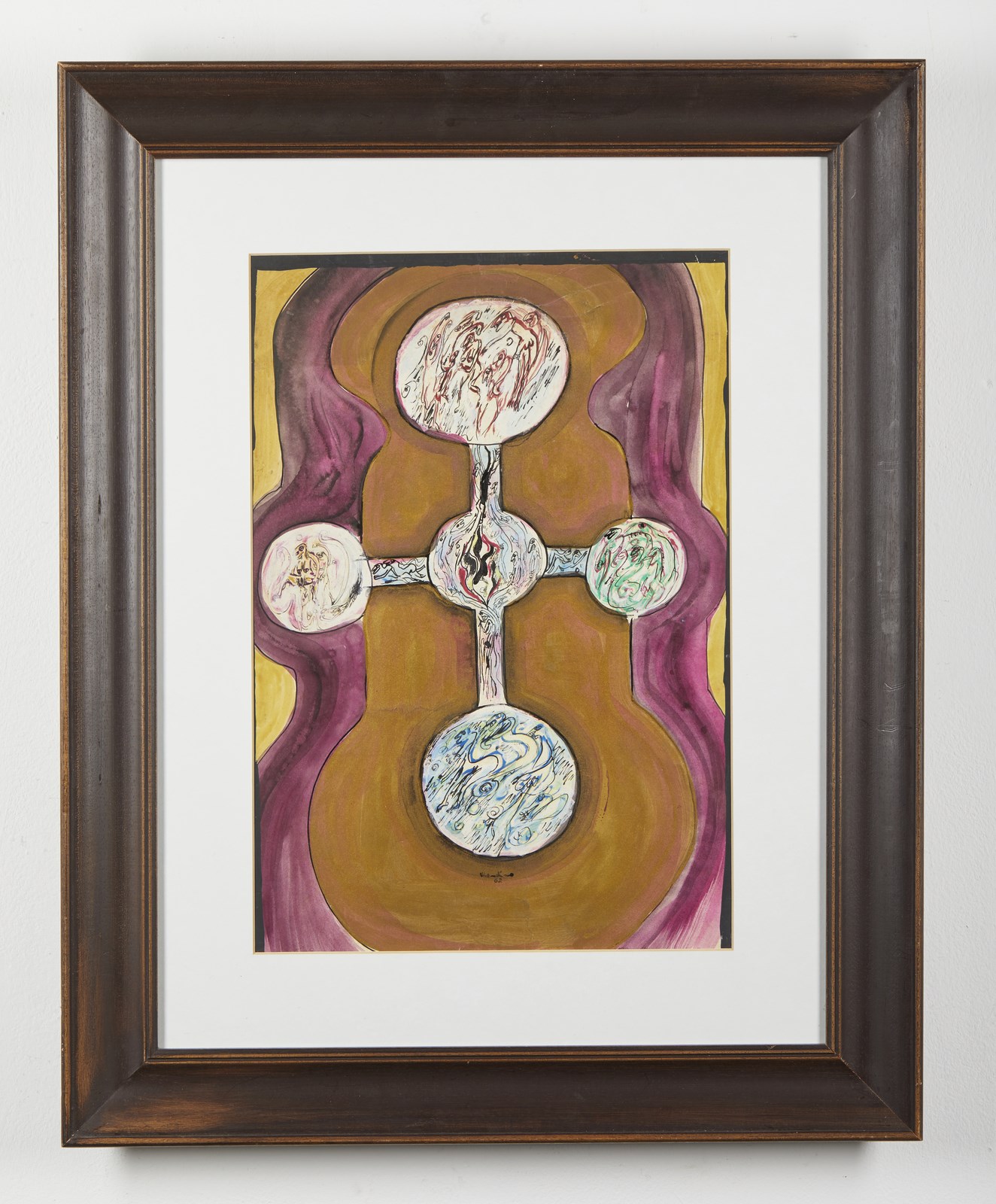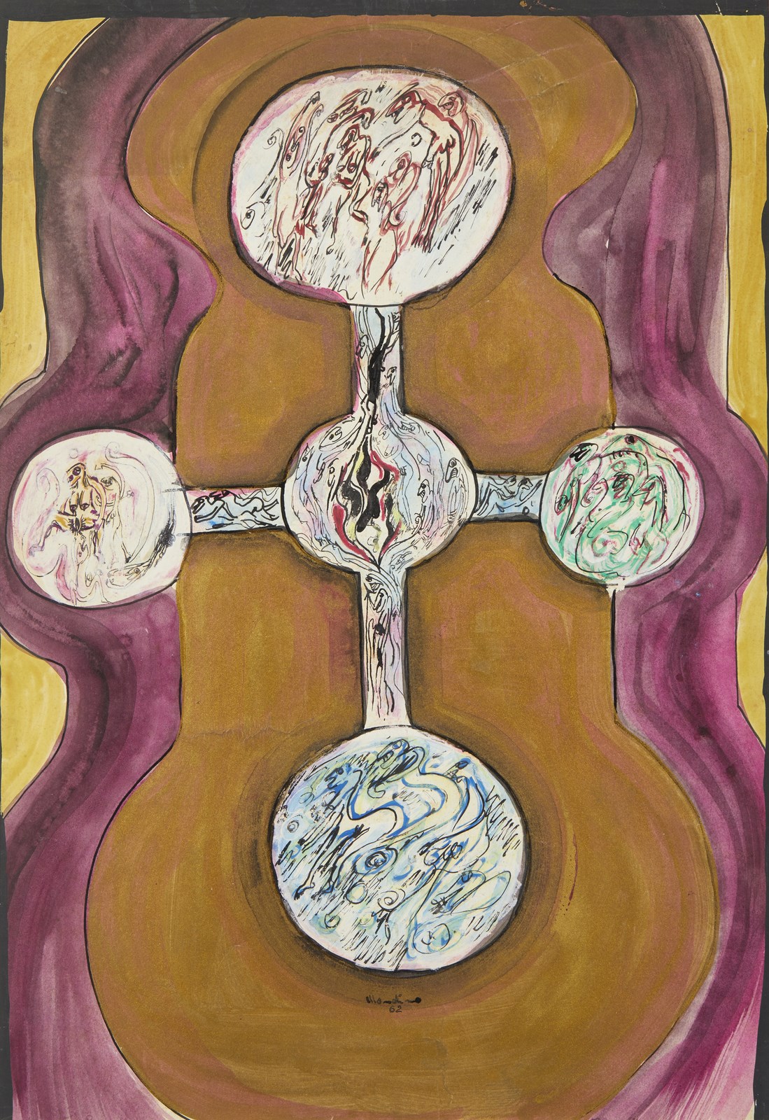 MONDINO ALDO (1938 - 2005) Senza titolo. . 1962. Tecnica mista su carta. Cm 33,00 x 47,00. Firma e anno in basso al centro. Autentica dell'artista su fotografia. Lievi difetti. . Cornice presente