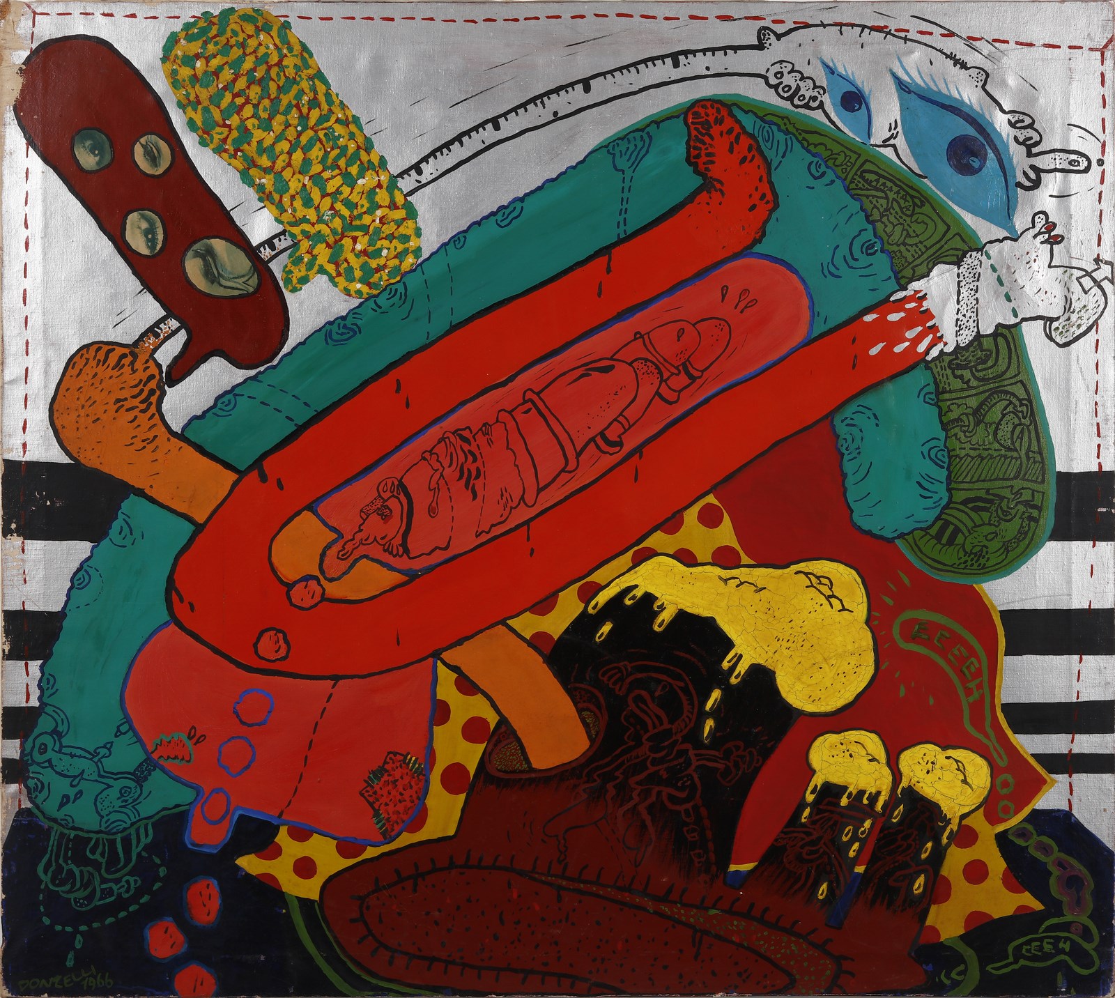 DONZELLI BRUNO (n. 1941) Figura Beat. 1966. Olio su tela . Cm 100,00 x 90,00. Firma e anno in basso a sinistra. Opera archiviata presso la Fondazione Bruno Donzelli, Napoli, come da documentazione fotografica allegata all'opera riportante il relativo numero d'inventario e la firma dell'artista.