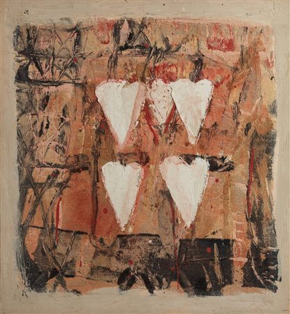 CELIBERTI GIORGIO (n. 1929) Piazza Maggiore. Polimaterico su tavola. Cm 81,50 x 76,50. 1993-2002. Al retro titolo, firma e anno. Autentica dell'artista su fotografia riportante il relativo numero d'inventario. Lievi difetti.
