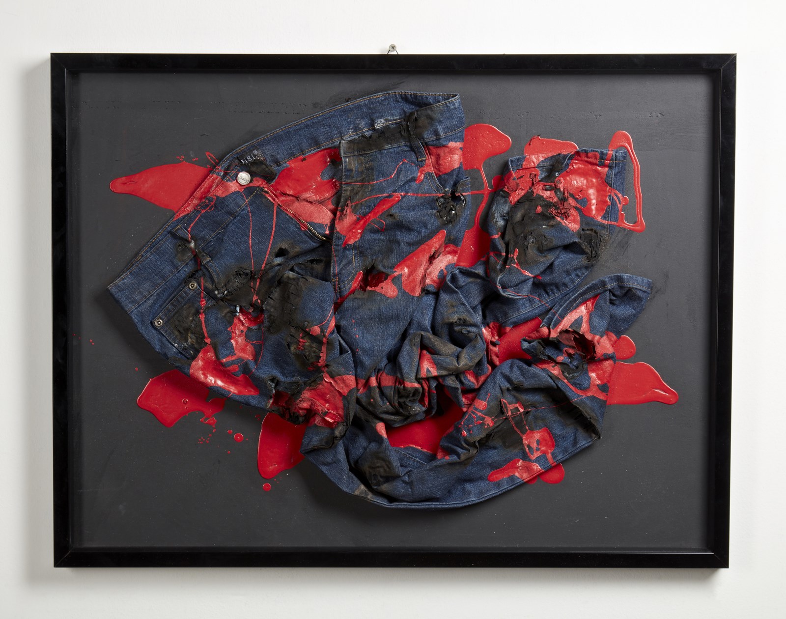 AUBERTIN BERNARD (1934 - 2015) Jeans bruciati. 2009. Tecnica mista e applicazioni su tavola. Cm 80,00 x 60,00. Al retro firma e anno. Opera archiviata presso l'Archivio Bernard Aubertin, Brescia, come da documentazione fotografica allegata all'opera riportante il relativo numero d'inventario. Lievi difetti. . Cornice presente