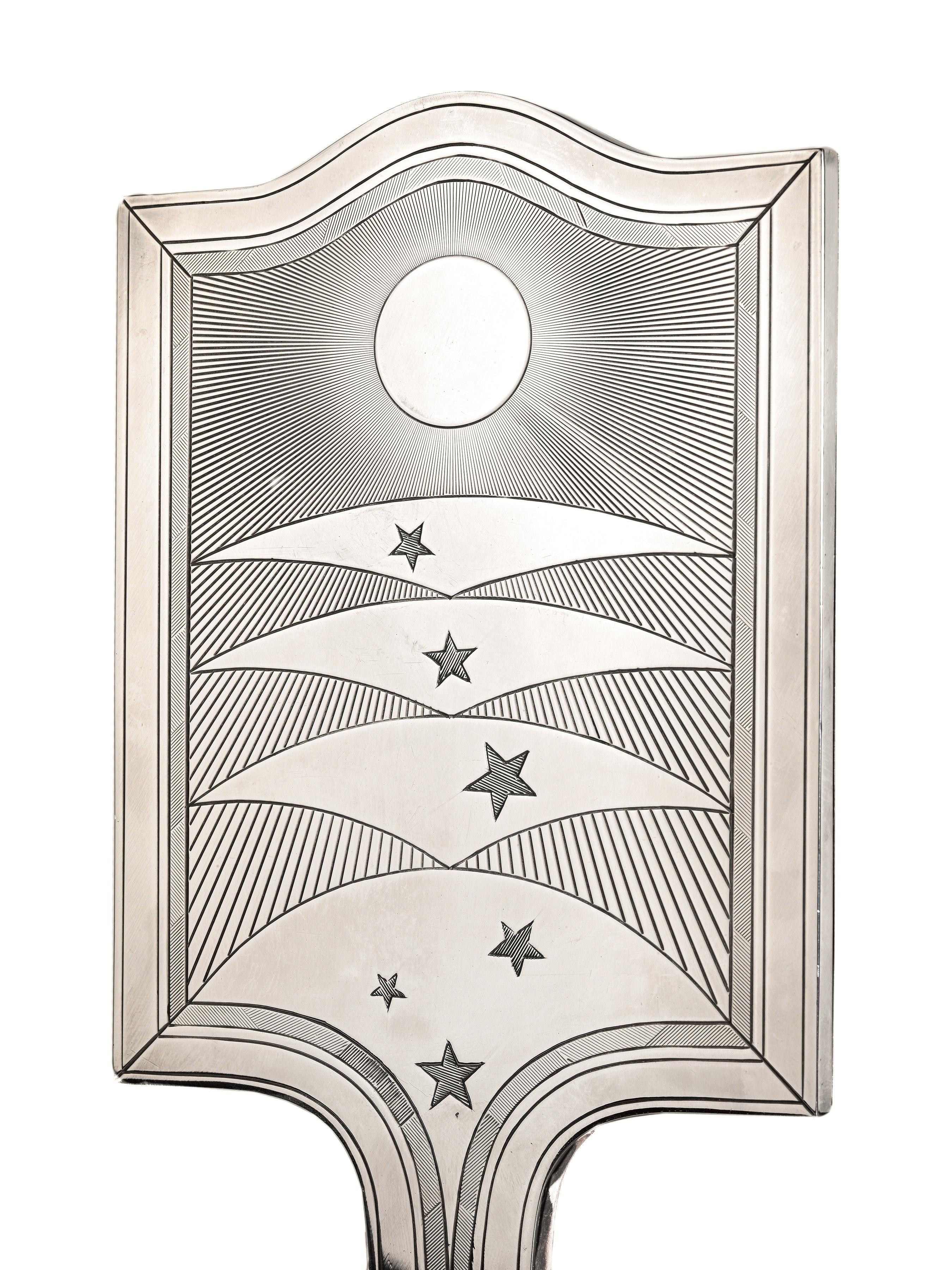 Servito da toilette disegnato da Ernesto Thayaht, 1930, in argento inciso con...