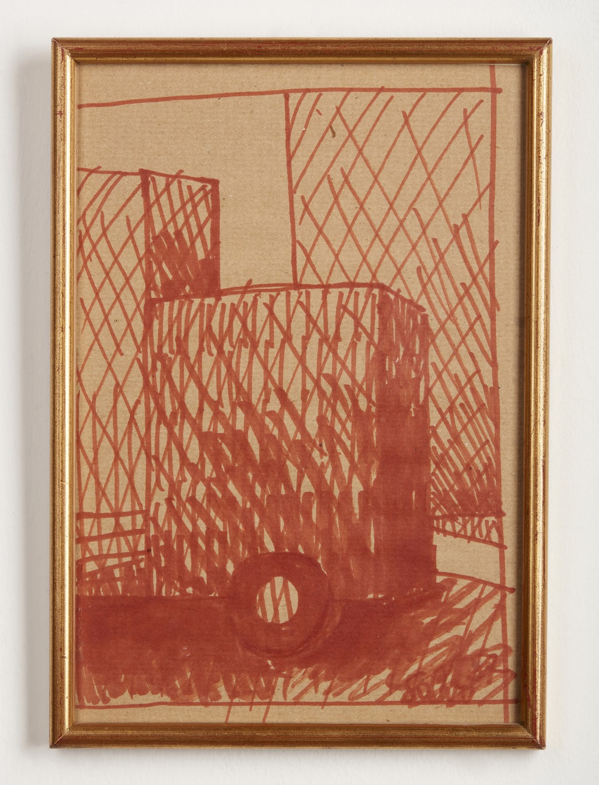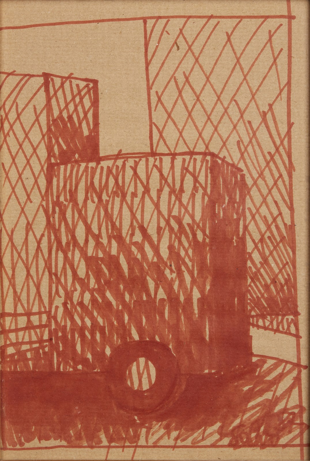 SALVO (SALVATORE MANGIONE) (1947 - 2015) Senza titolo. 1987. Pennarello su carta. Cm 19,00 x 28,00. Firma in basso a destra. Opera archiviata presso l'Archivio Salvo, Torino, come da documentazione fotografica allegata all'opera riportante il relativo numero d'inventario. Lievi difetti. . Cornice presente