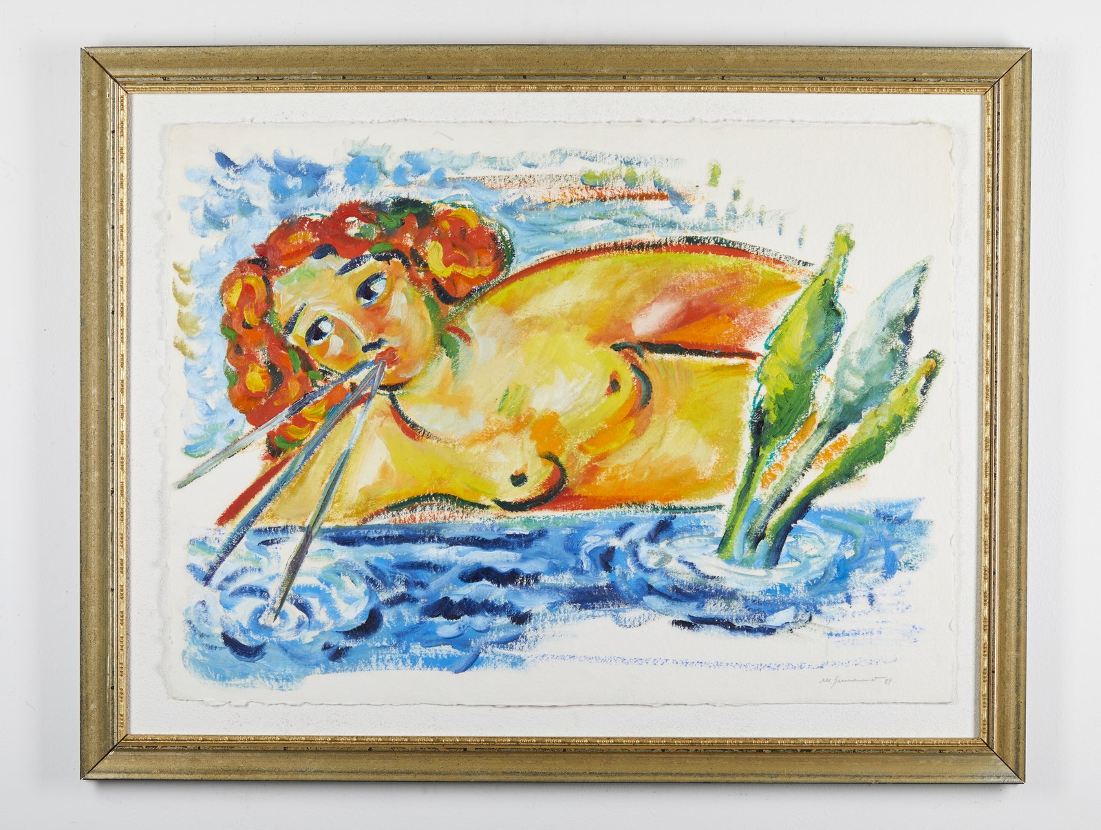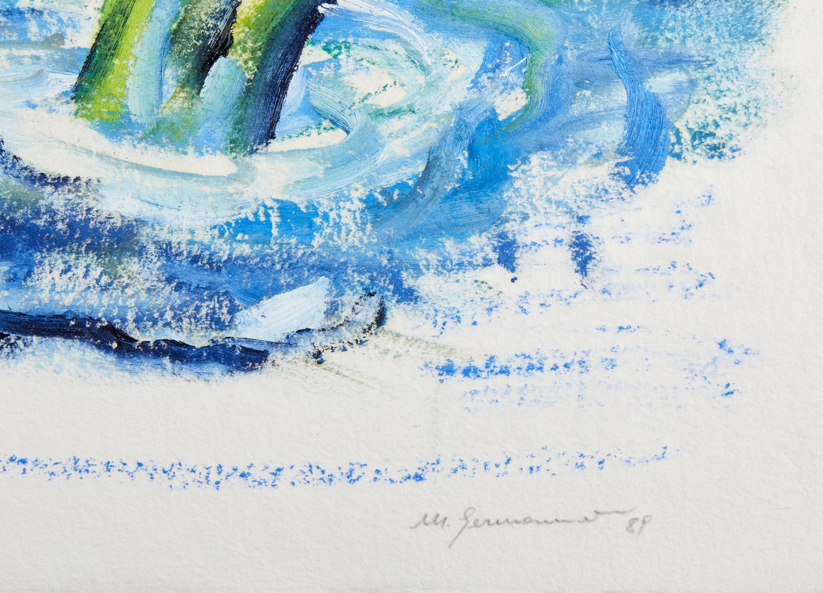 GERMANA' MIMMO (1944 - 1992) Senza titolo. . 1989. Tecnica mista su carta. Cm 75,50 x 56,00. Firma e anno in basso a destra. . Cornice presente