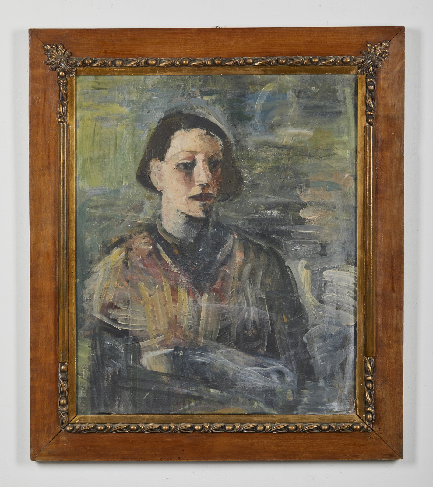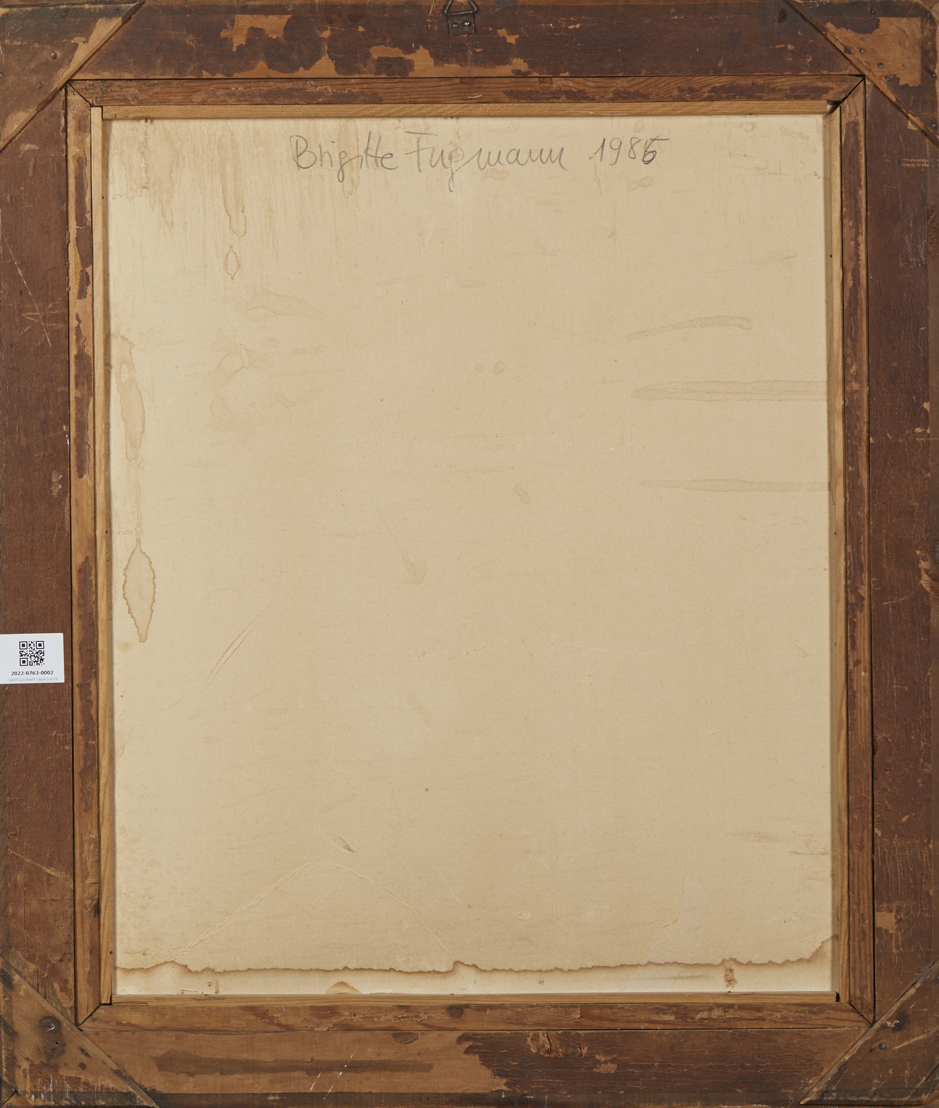 BRIGITTE FUGMANN (1948 - 1992) Senza titolo. . 1985. Olio su tela applicato su cartone. Cm 60,00 x 70,00. Firma e anno al retro. Difetti. . Cornice presente