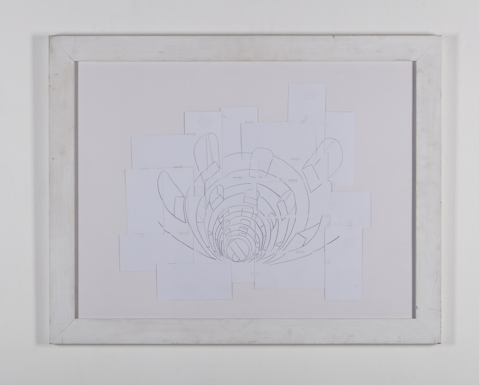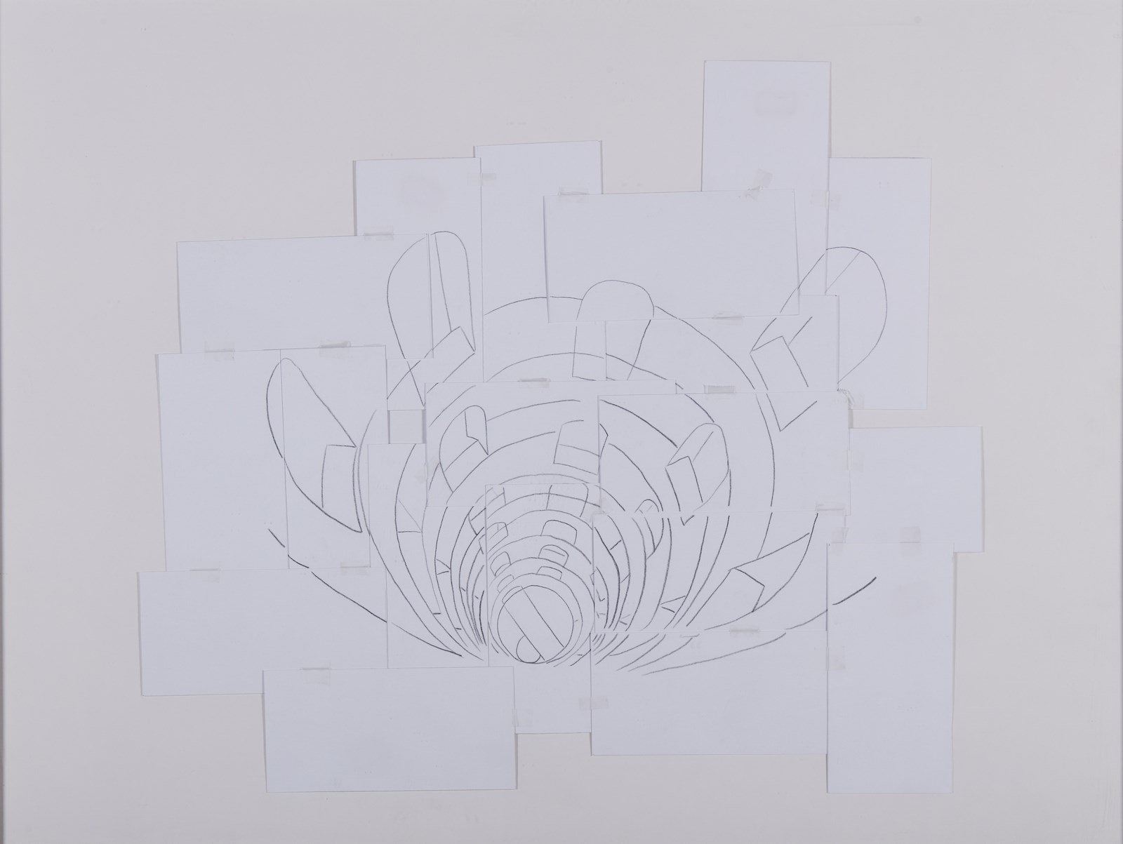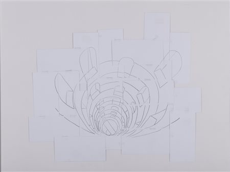 MORO LILIANA (n. 1961) Pozzo di San Patrizio. 2001. Collage e matita su carta. Cm 70,00 x 50,00. Pubblicazione: Il Buco a cura di Achille Bonito Oliva, Galleria Pio Monti, Roma. Bozzetto preparatorio per l'opera realizzata per la Galerie Greta Meert, Burssels.