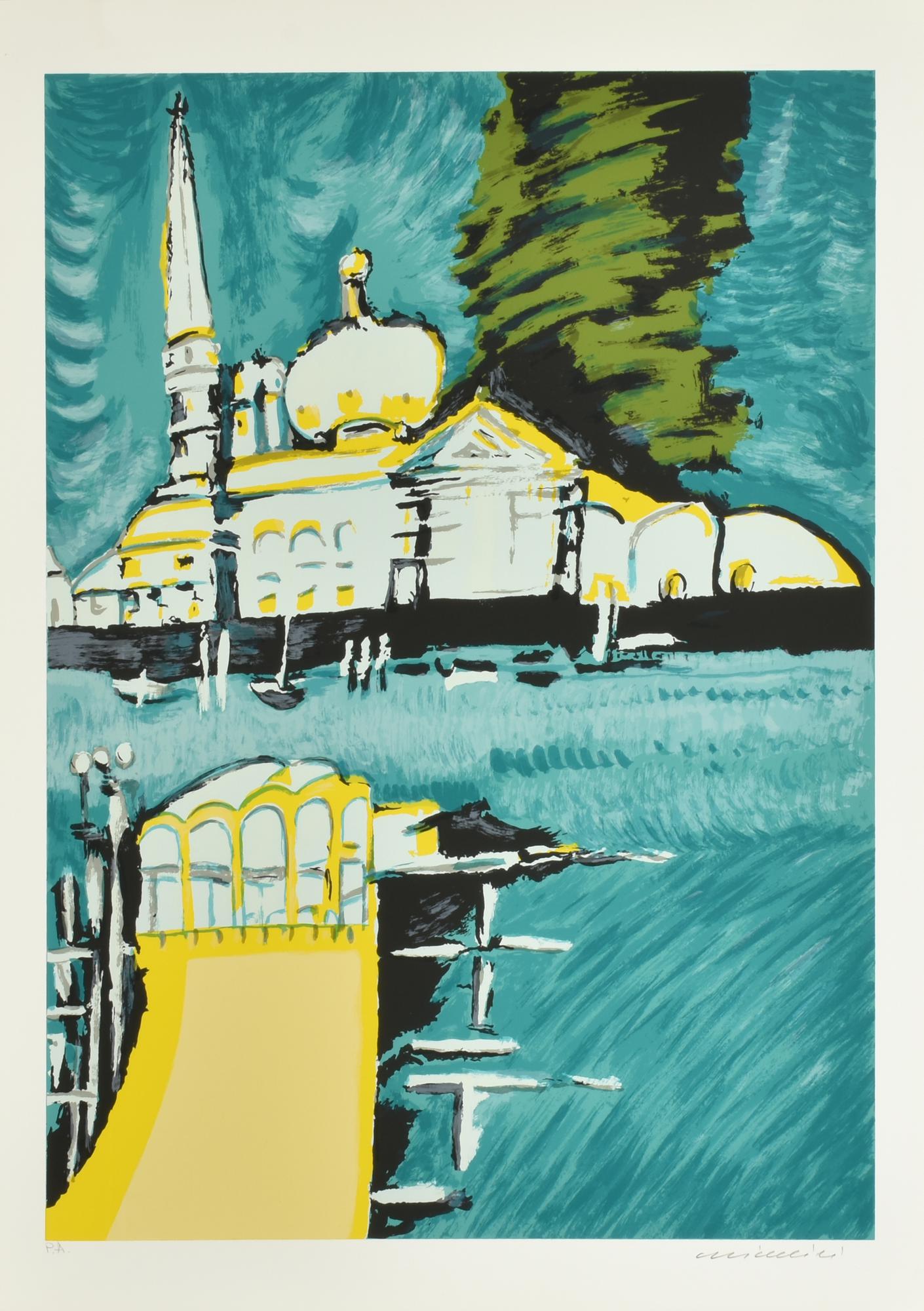 Remo Brindisi ISOLA S. GIORGIO MAGGIORE serigrafia su carta, cm 70x50; es....