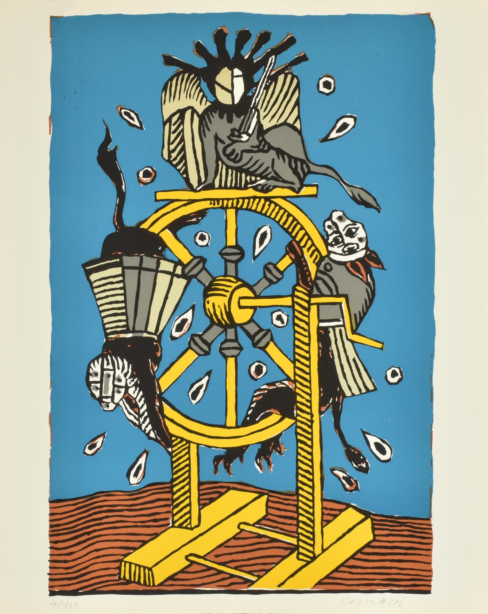 Arturo Carmassi LA RUOTA DELLA FORTUNA linoleumgrafia su carta, cm 58x46,5,...