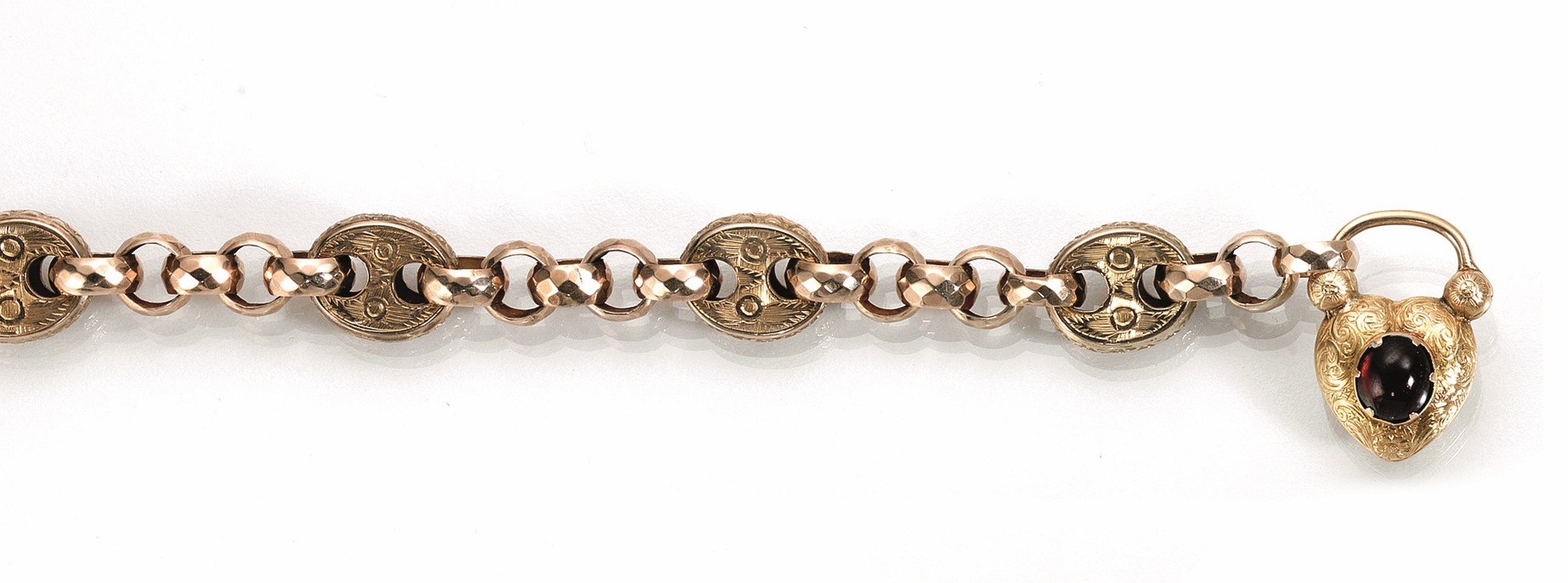 Bracciale, Inghilterra fine secolo XIX, in oro a basso titolo e oro 18 kt