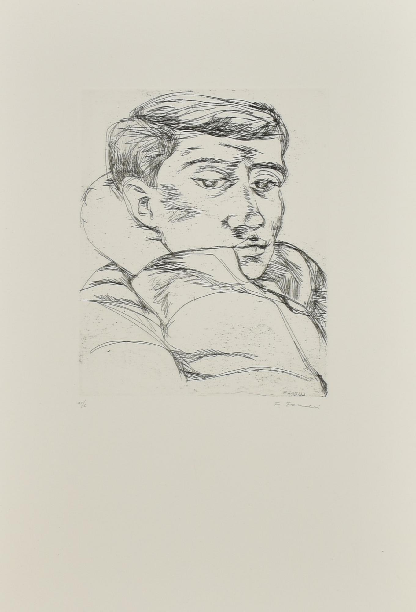 Fernando Farulli RITRATTO DI UN GIOVANE Acquaforte-Acquatinta, mm 246x200, su...
