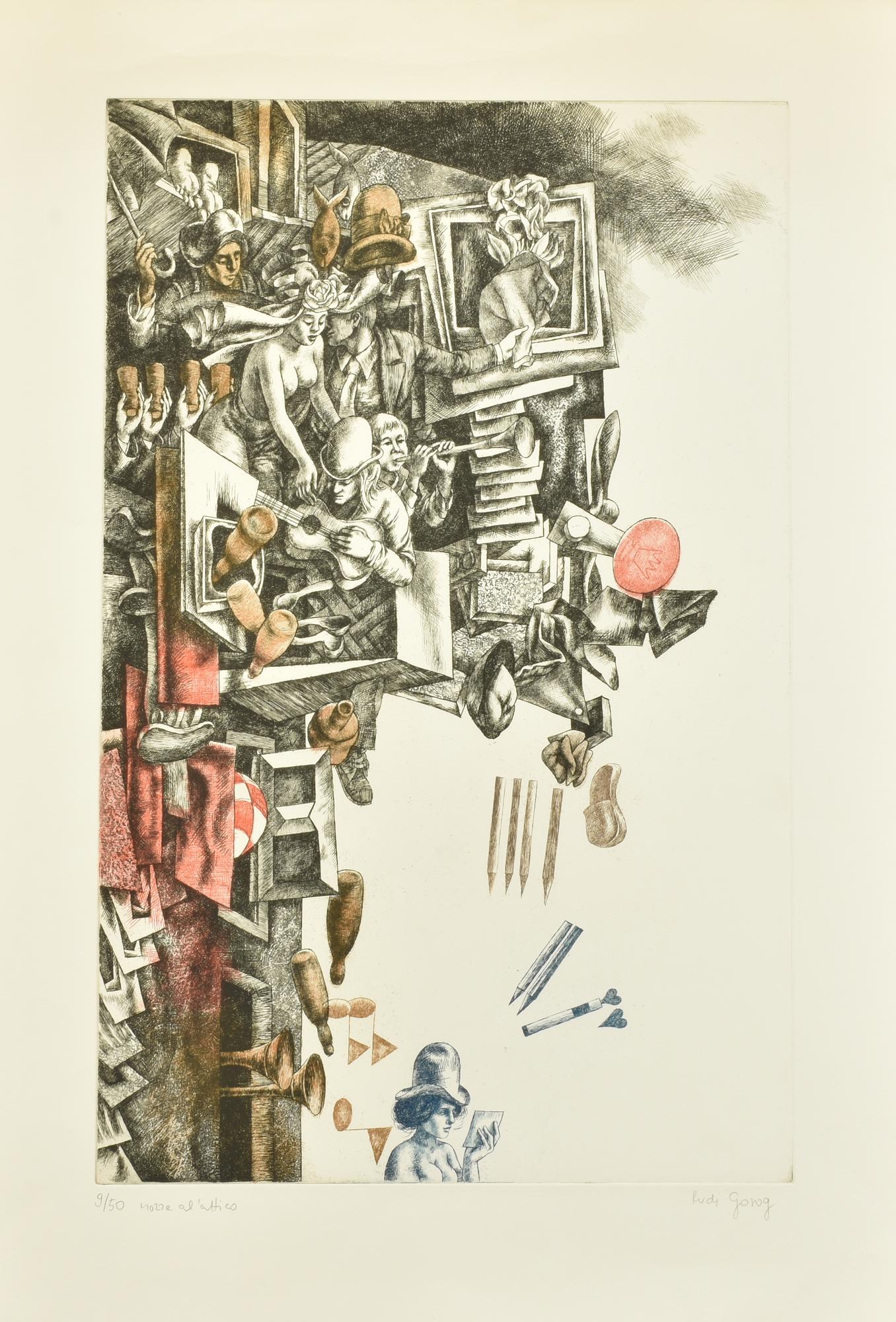 Rudi Gorog NOZZE AL'ATTICO incisione su carta Fabriano, battuta cm 56x35, su...