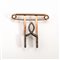 realizzata come uno spillo da balia a cui si diparte un motivo a doppio segmento con estremità a volute decorate da una linea di rose di diamanti, g 14