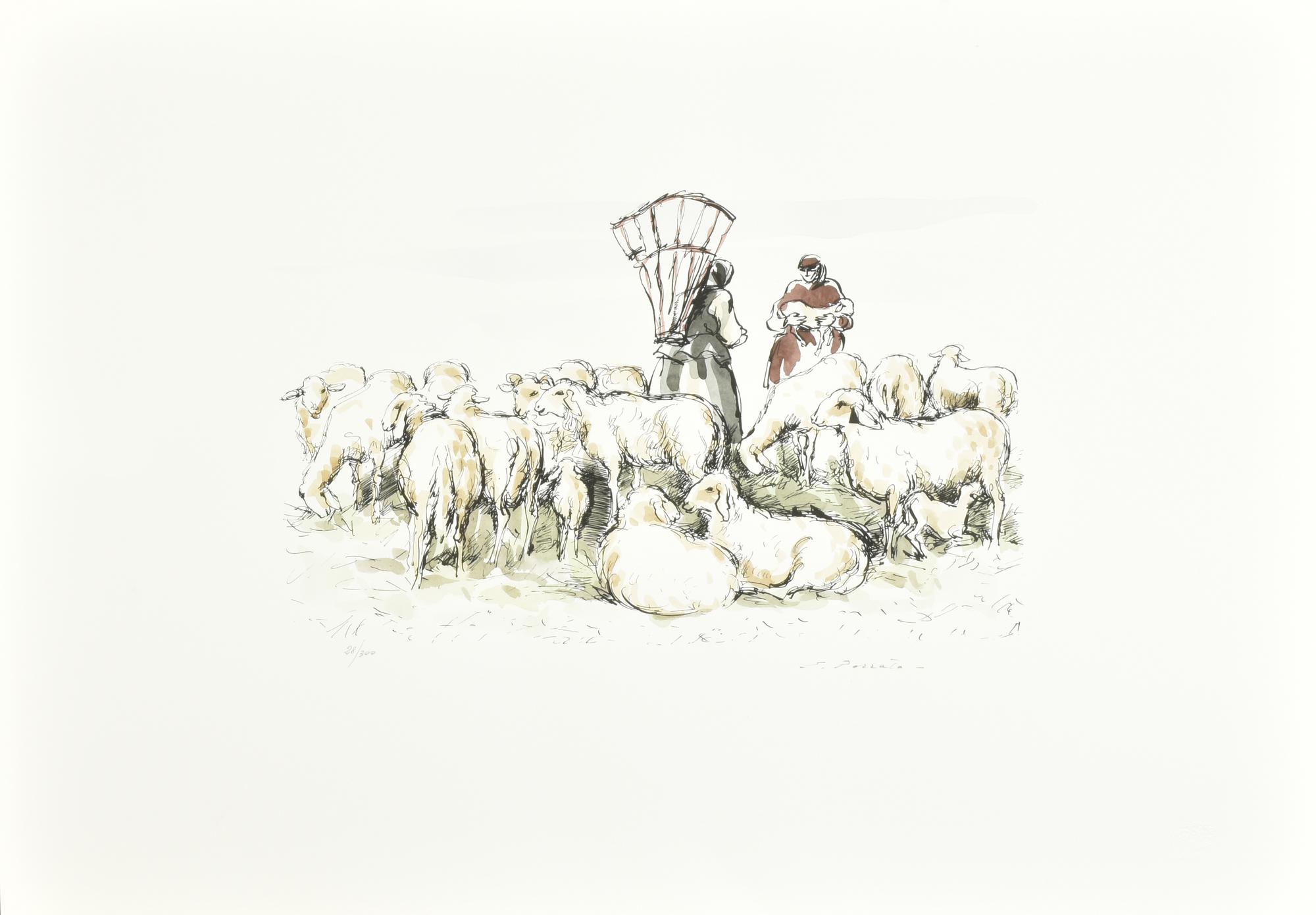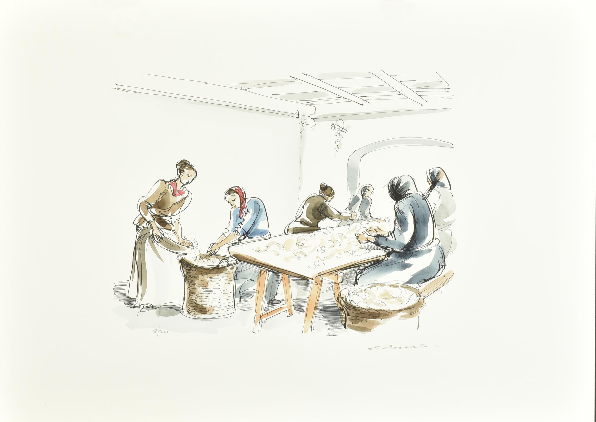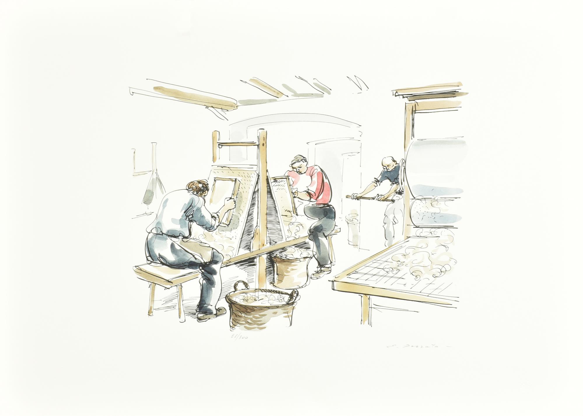 cartellina contenente dodici serigrafie acquarellate a mano, cm 70x50; es. 28/300