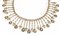 la parte anteriore realizzata come una frangia formata da barrette con finale a foglia e a goccia decorate in rose di diamante, la parte posteriore realizzata con una catena a maglia sottile in oro rosa, g 63, due frange danneggiate
