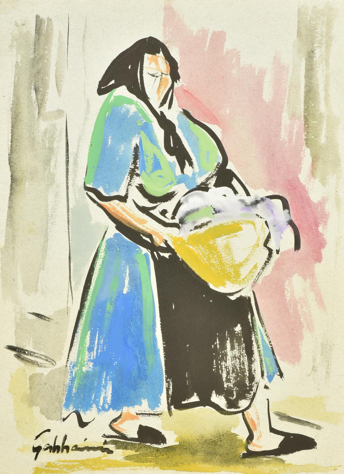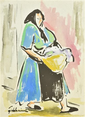 Gabbanini LA LAVANDAIA tecnica mista su carta Fabriano, cm 33x23 firma sul...