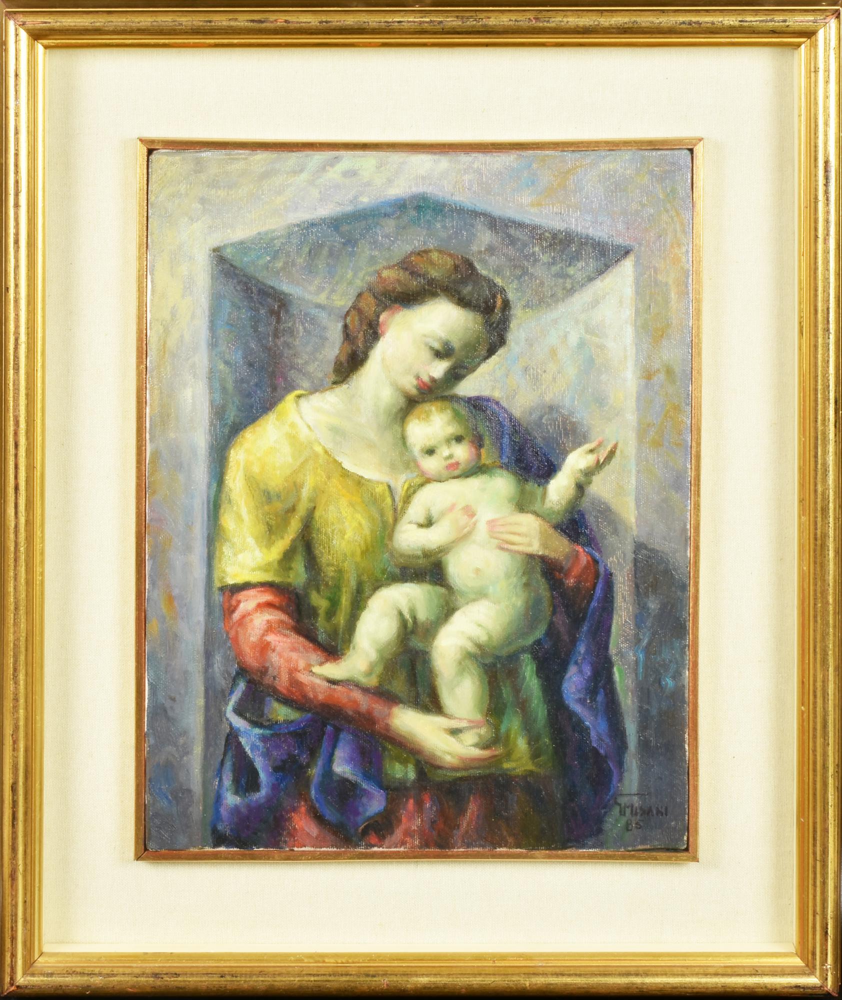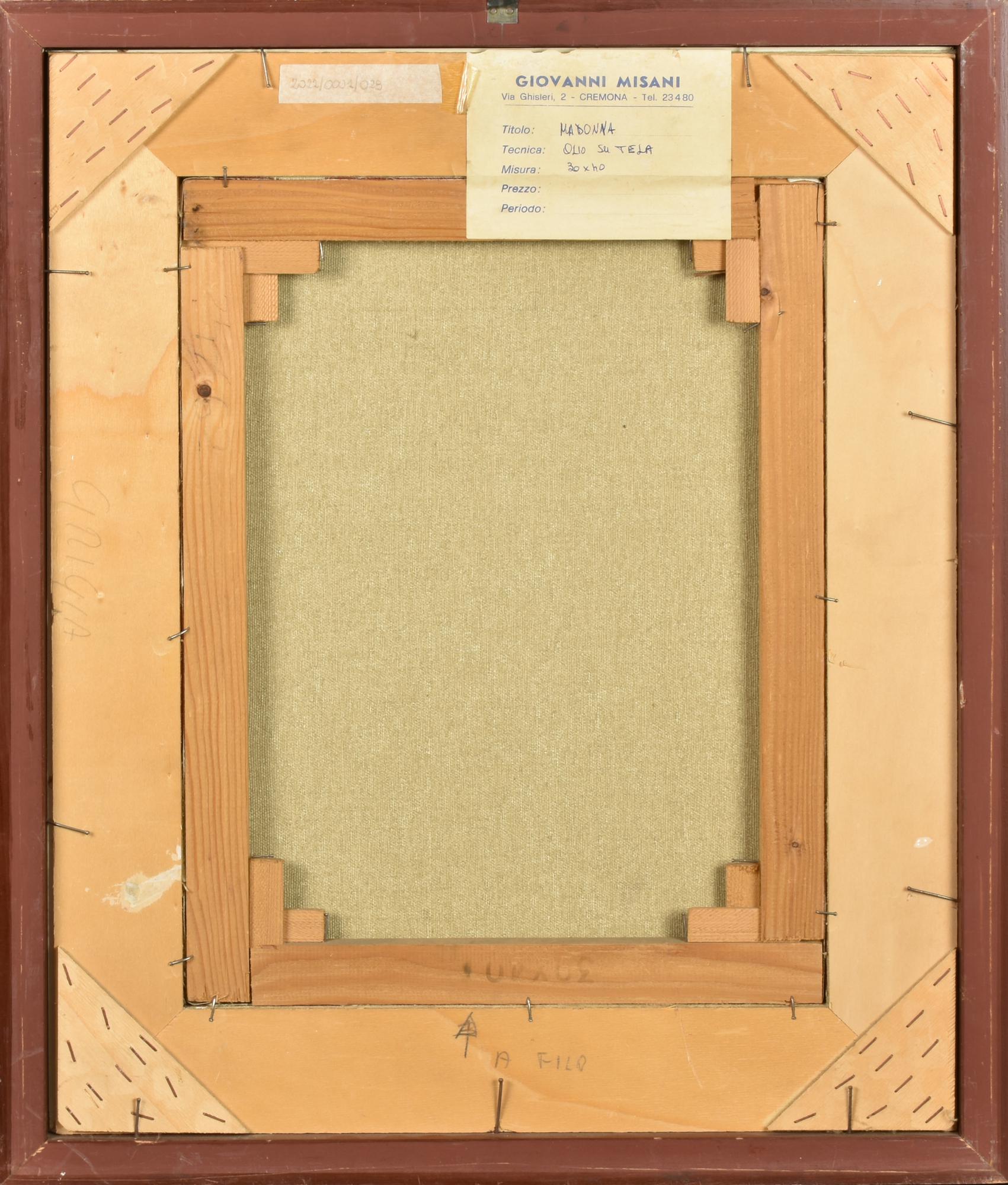 Giovanni Misani MADONNA olio su tela, cm 58x48 firma e data sul retro:...